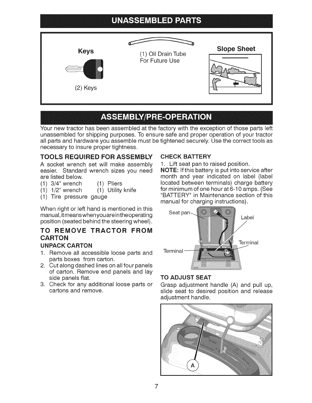 Assembly/Pre-Operation ......................... 7
