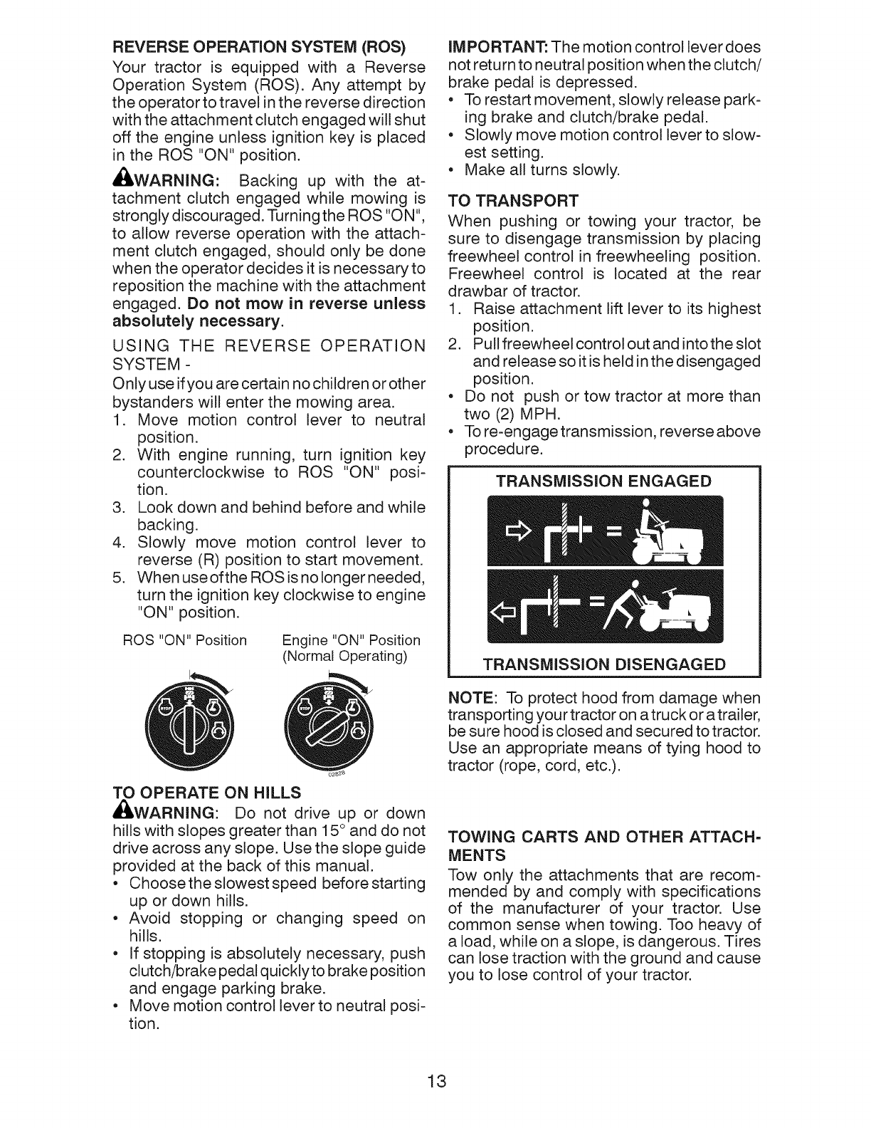 tractor. Use common sense when towing.