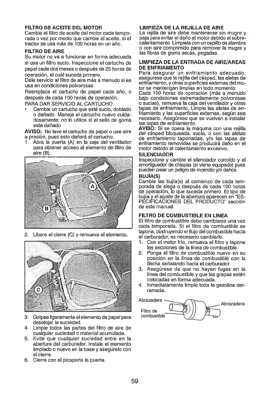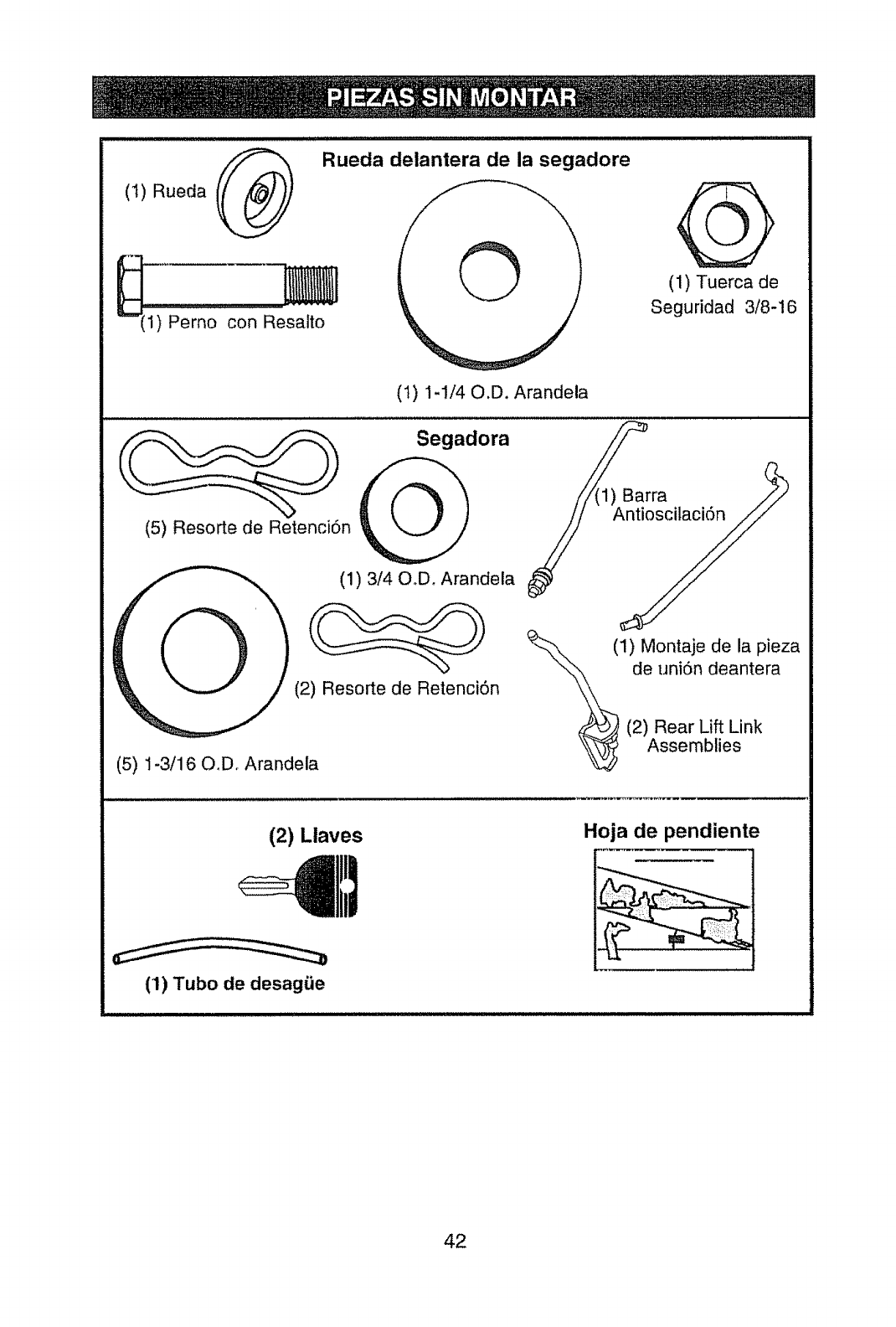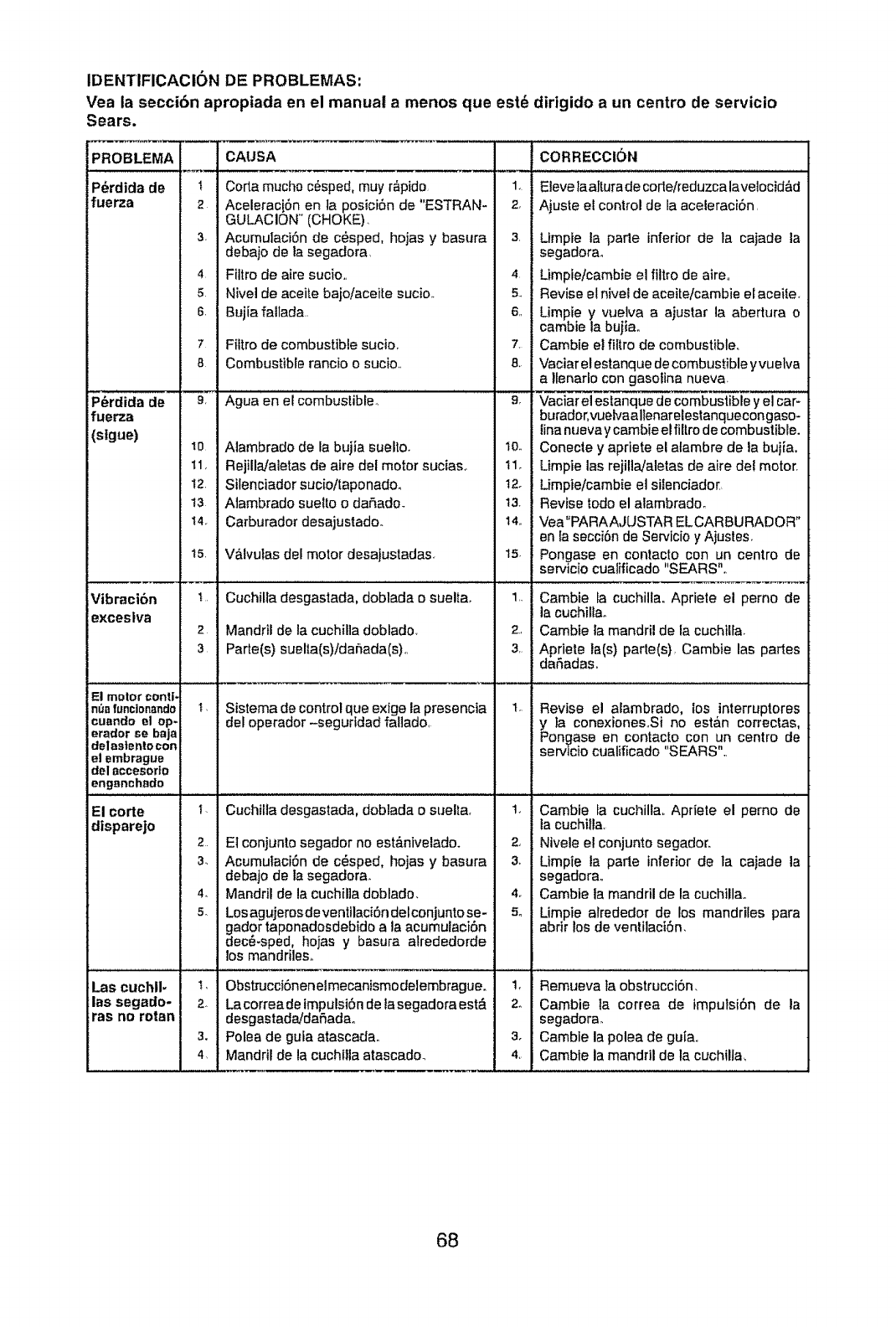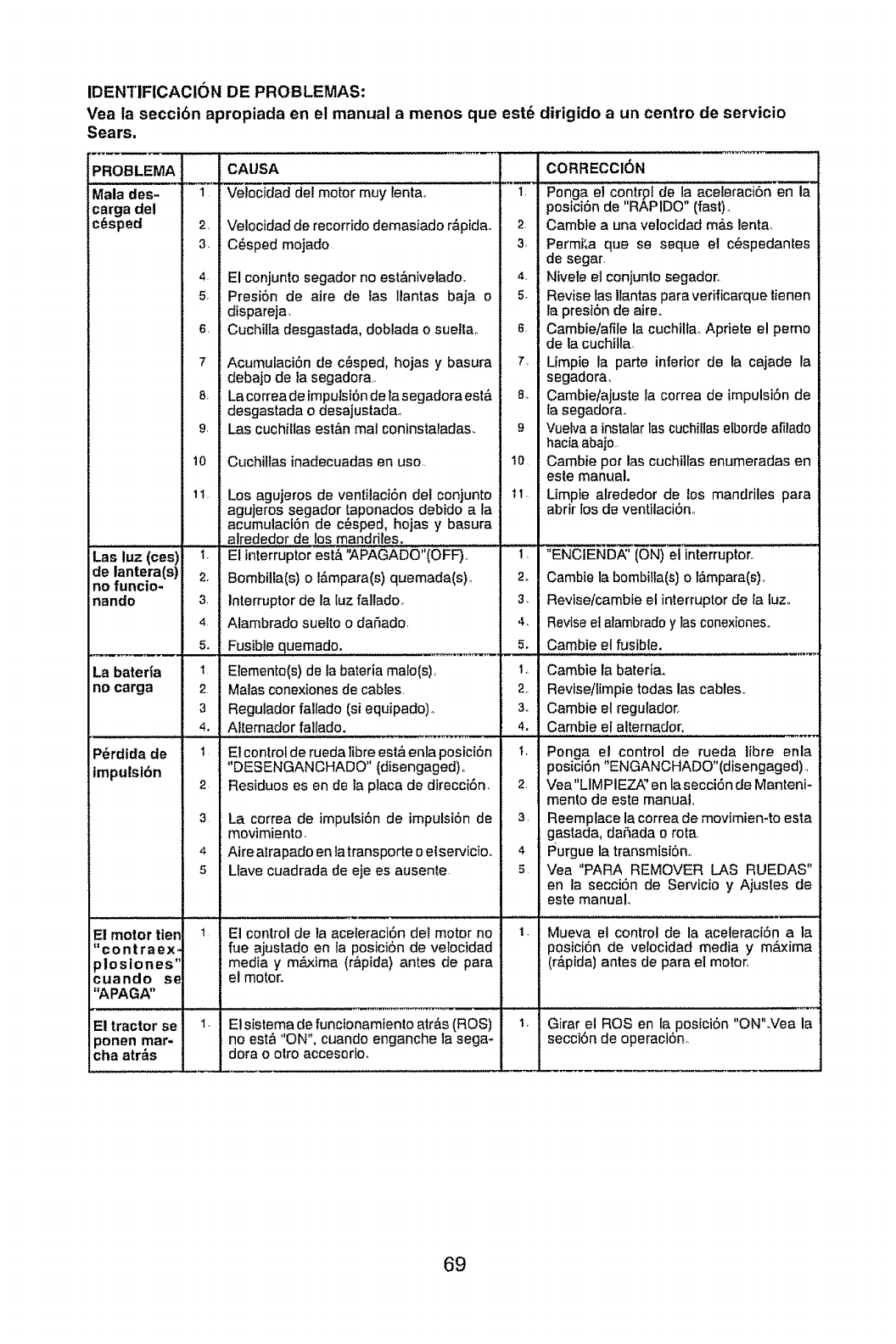 blades, spark plugs, air cleaners, belts, and oil filters.