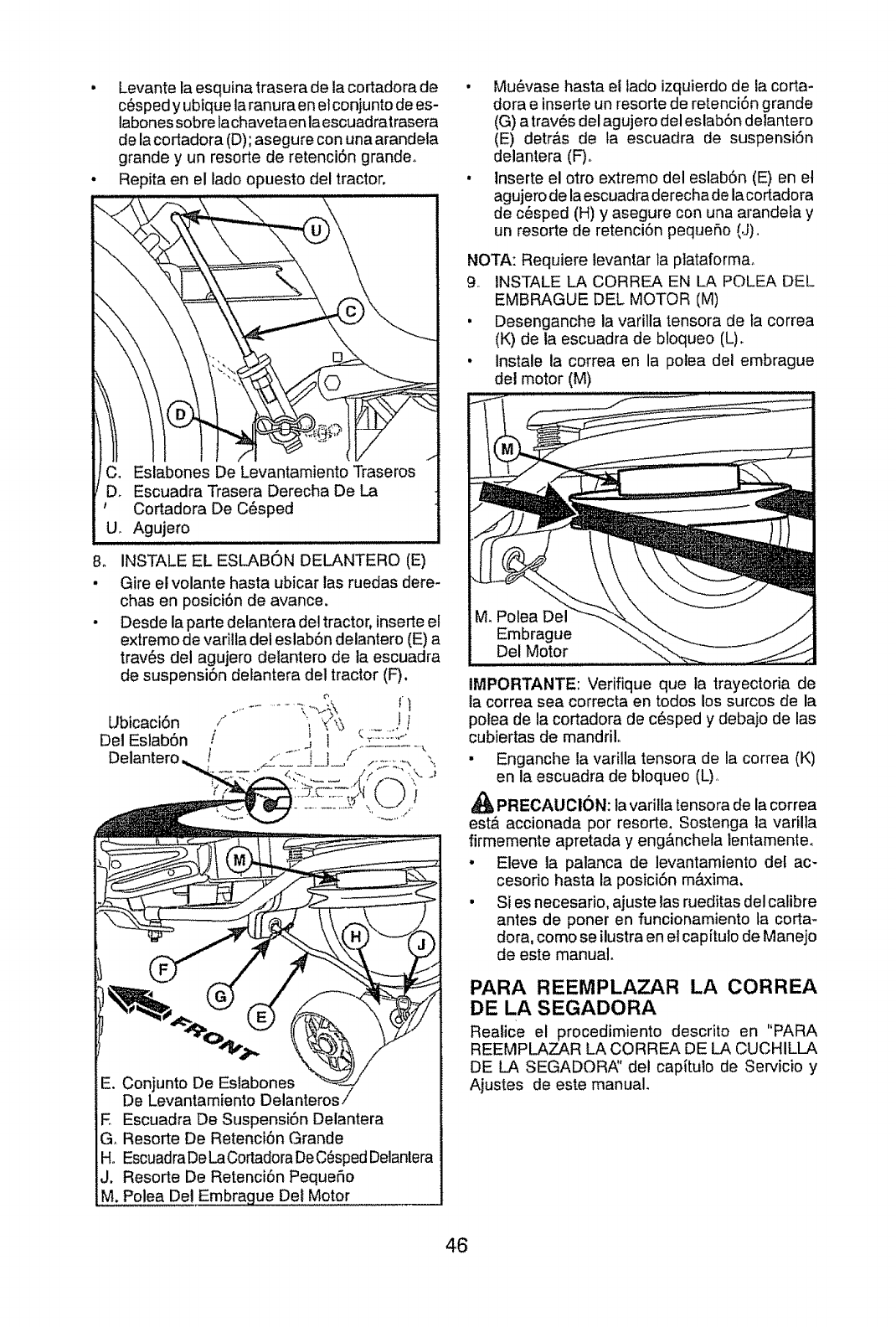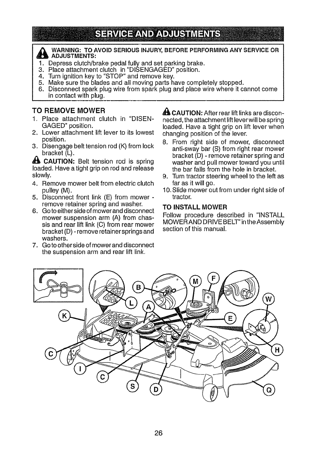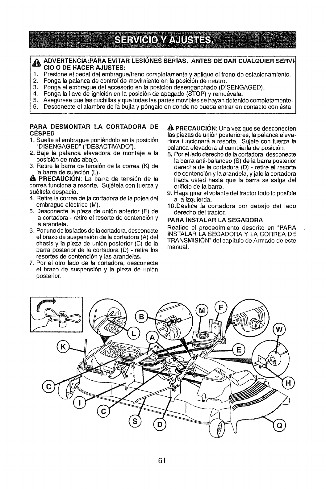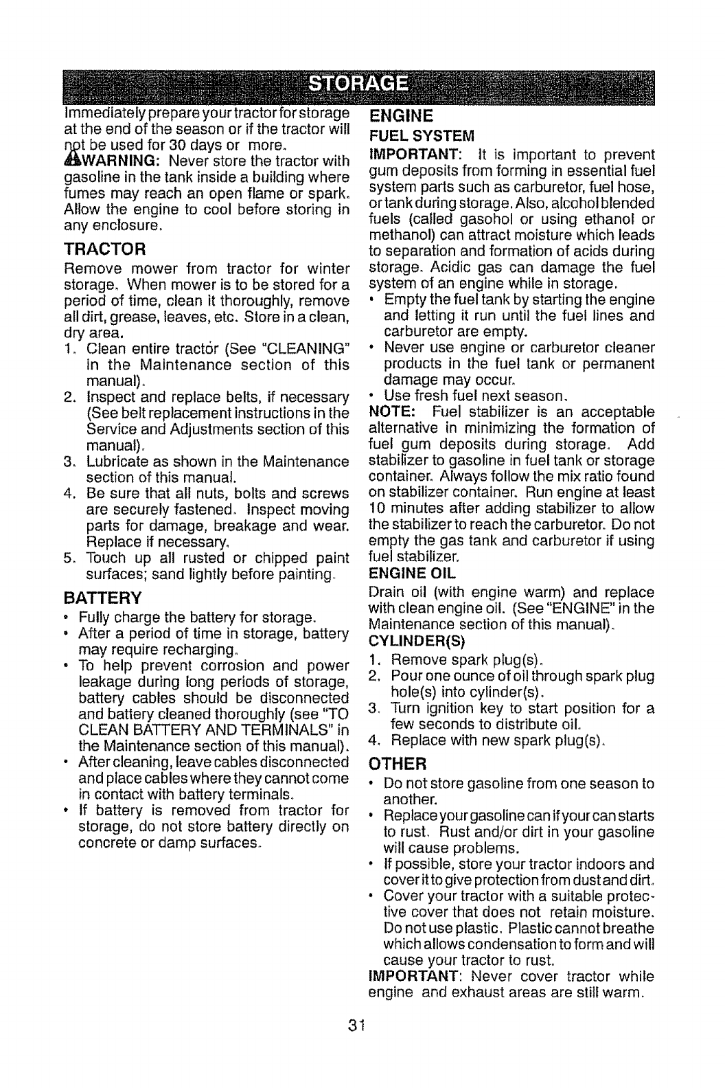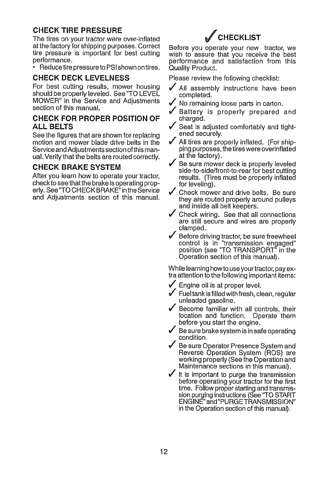 blades, spark plugs, air cleaners, belts, and oil filters.