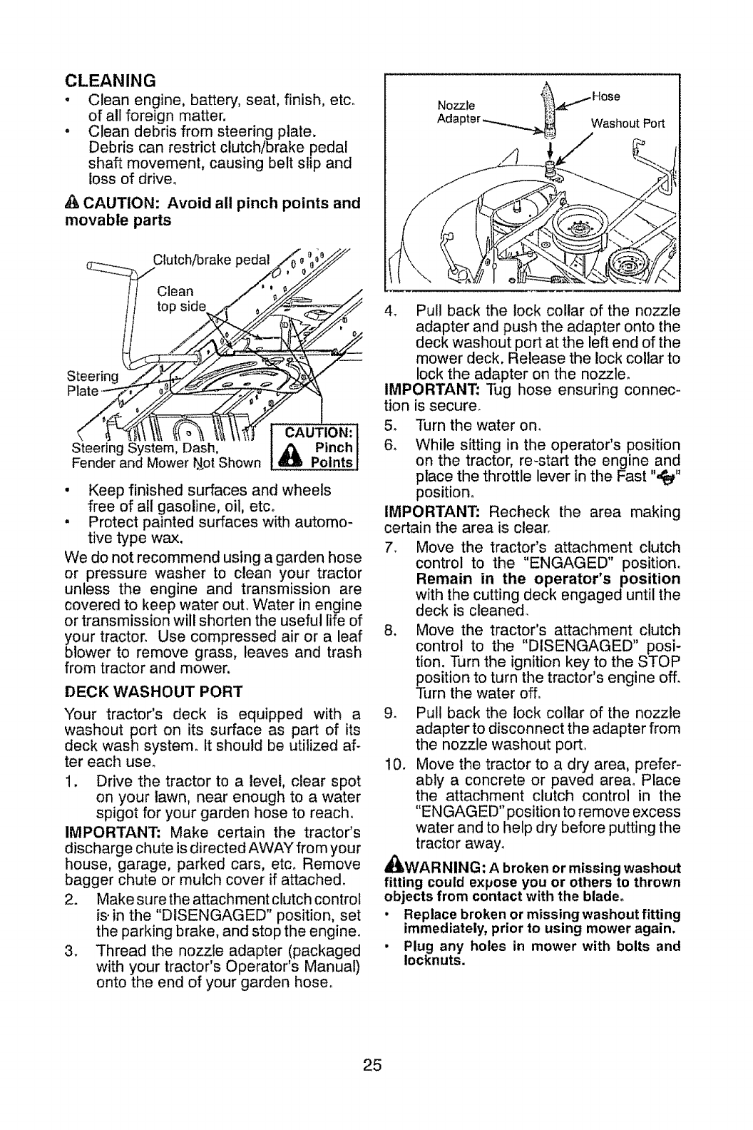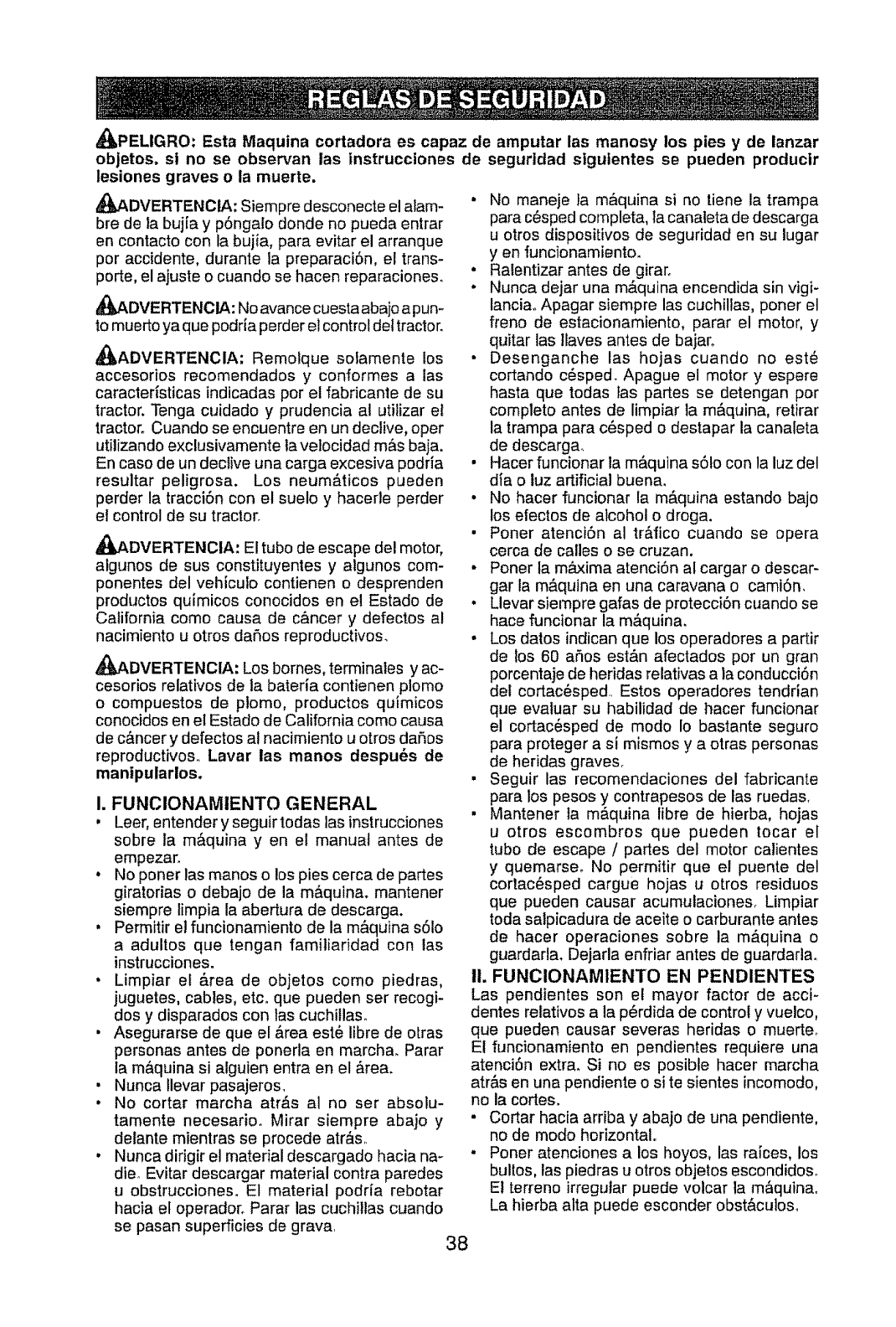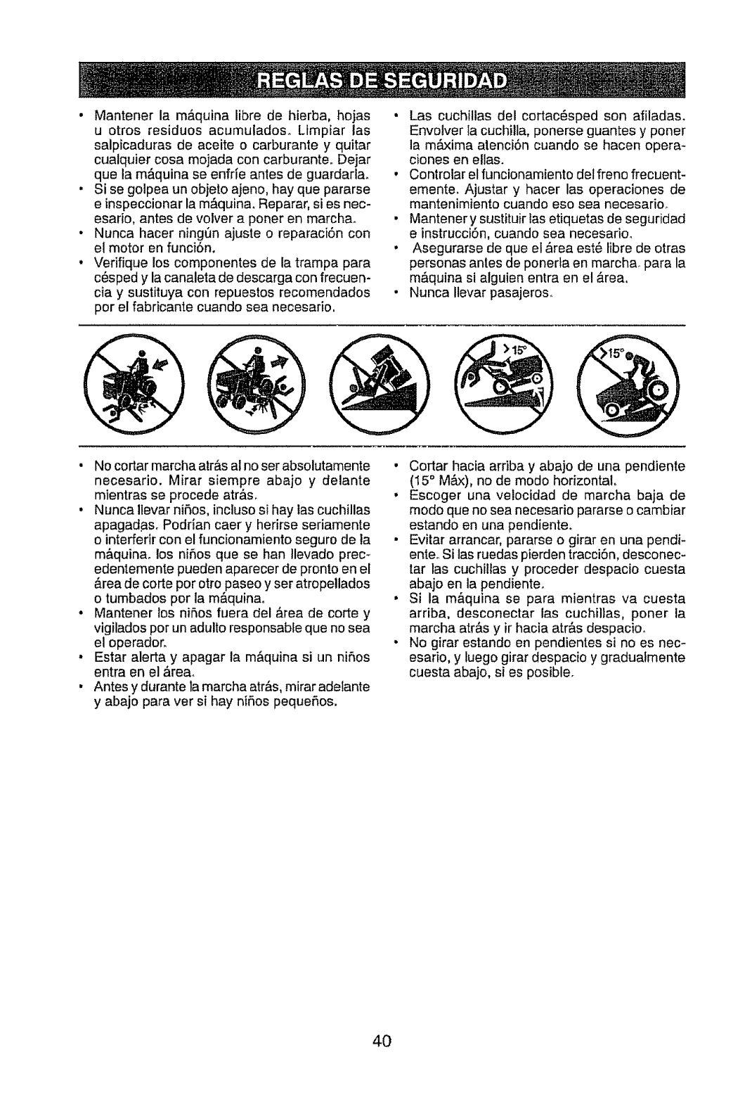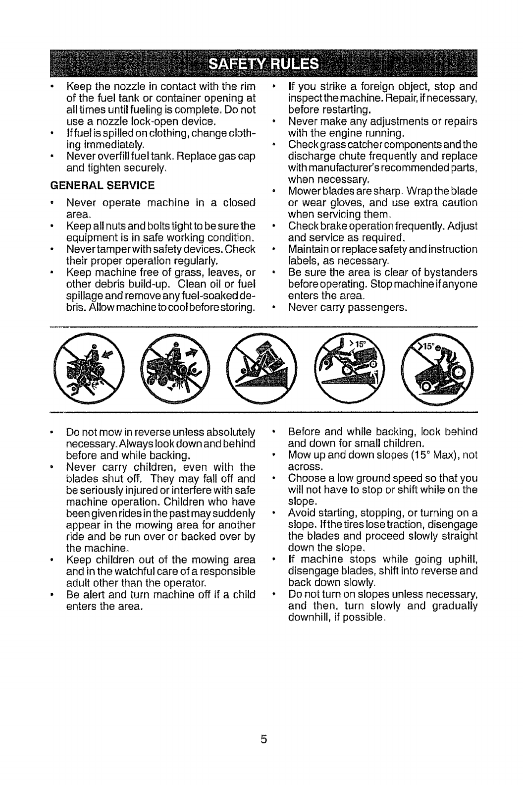 and amount of engine oil, failure to keep the deck clear of flammable debris, or failure to