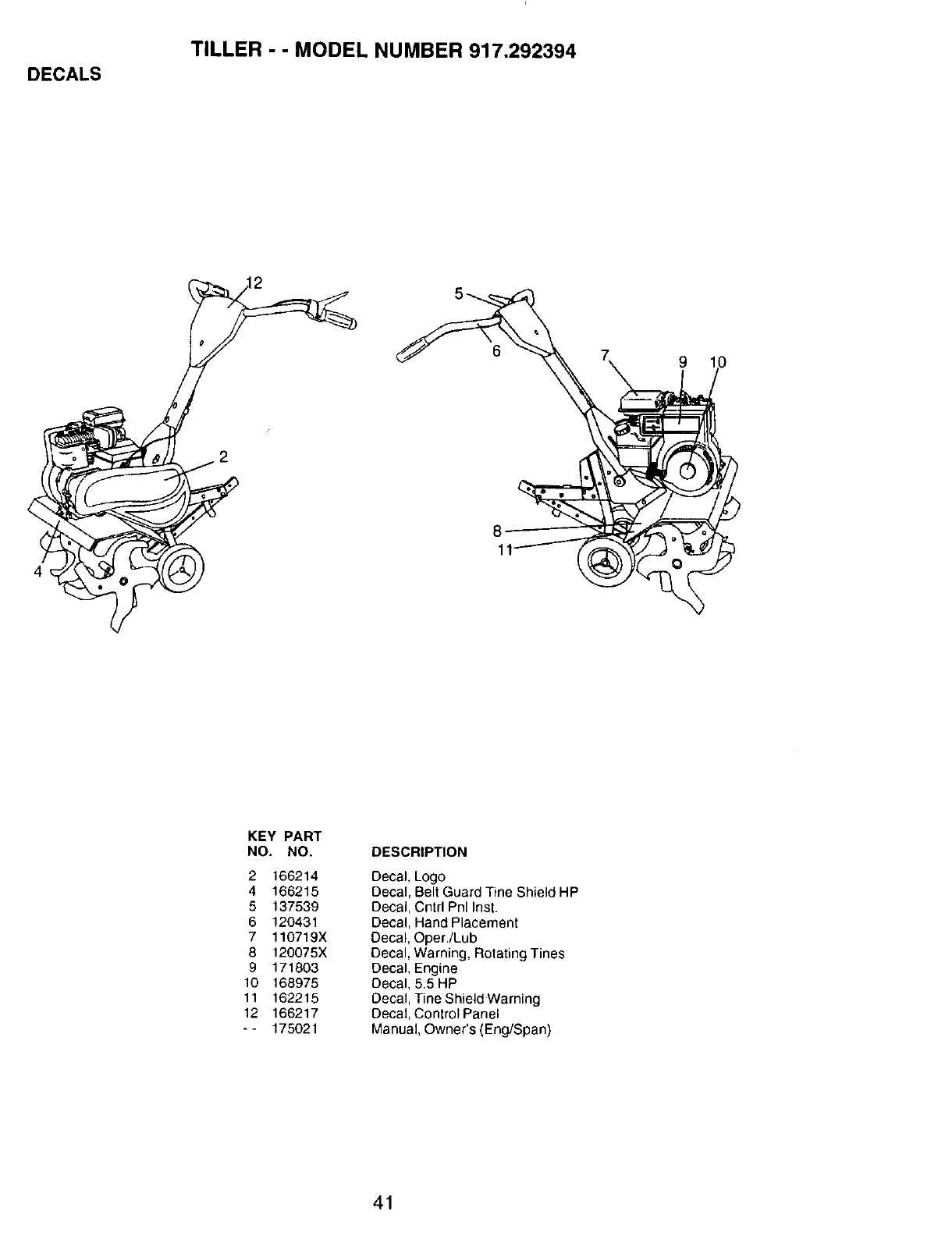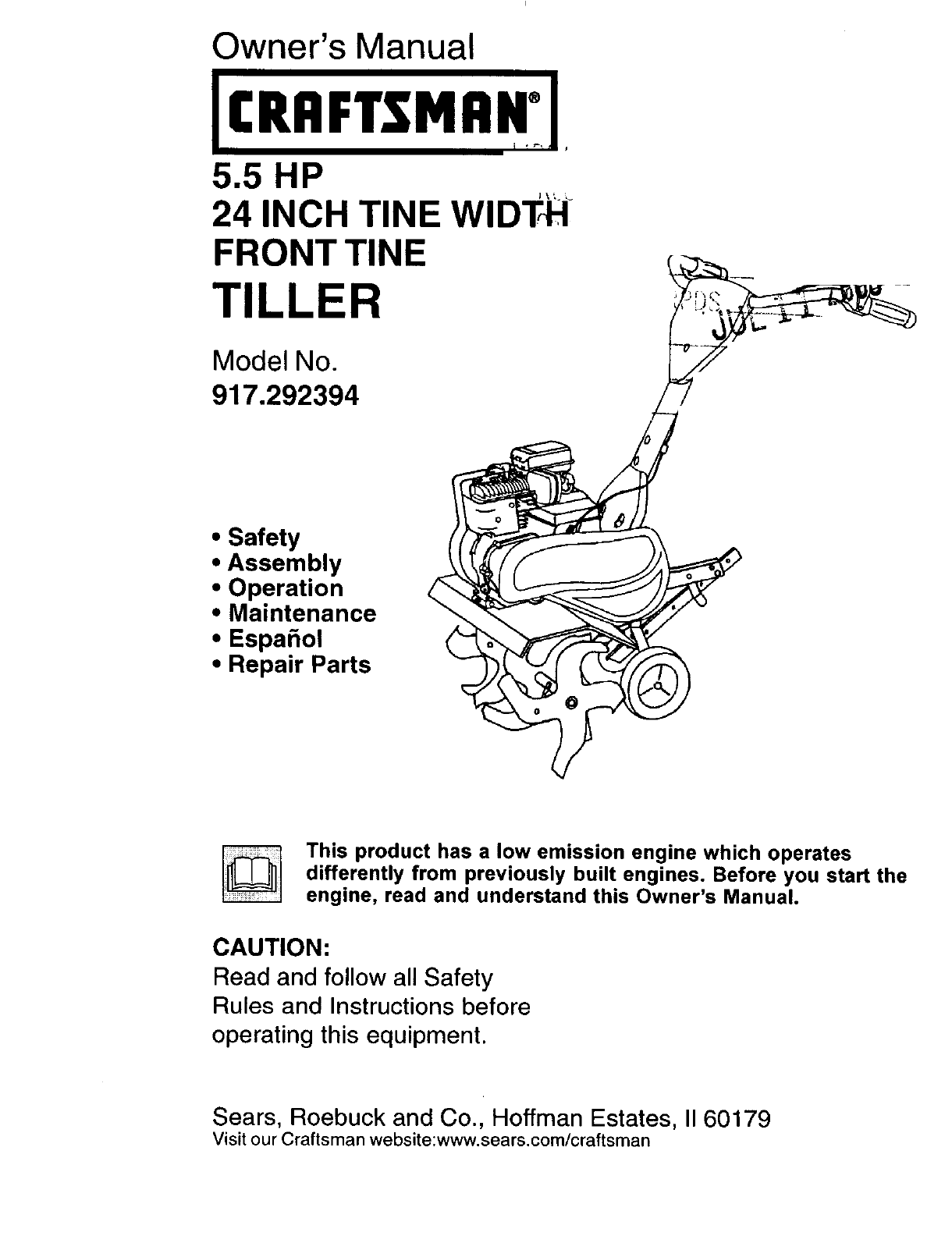 917292394 917292394 CRAFTSMAN TILLER - Manuals and Guides L0070094 View the owners manual for your CRAFTSMAN TILLER #917292394. Home:Lawn & Garden Parts:Craftsman Parts:Craftsman TILLER Manual