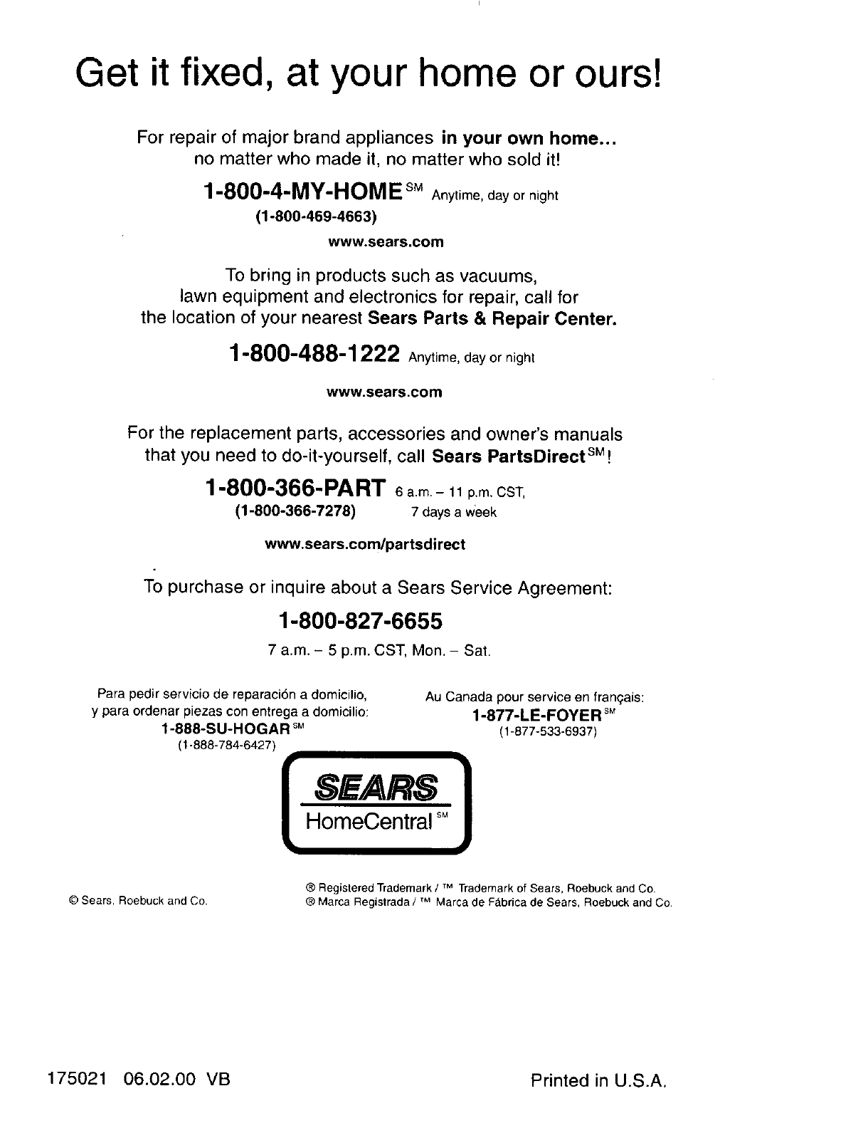 ® Marca Registrada/ TMMarca de Fabrica de Sears, Roebuck and Co,