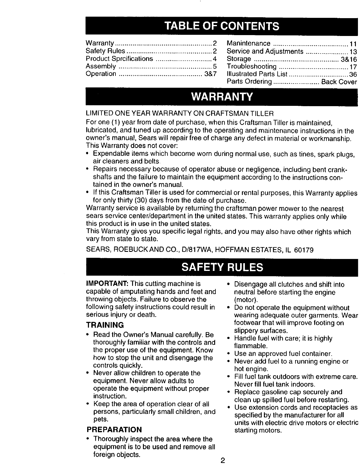 LIMITED ONE YEAR WARRANTY ON CRAFTSMAN TILLER