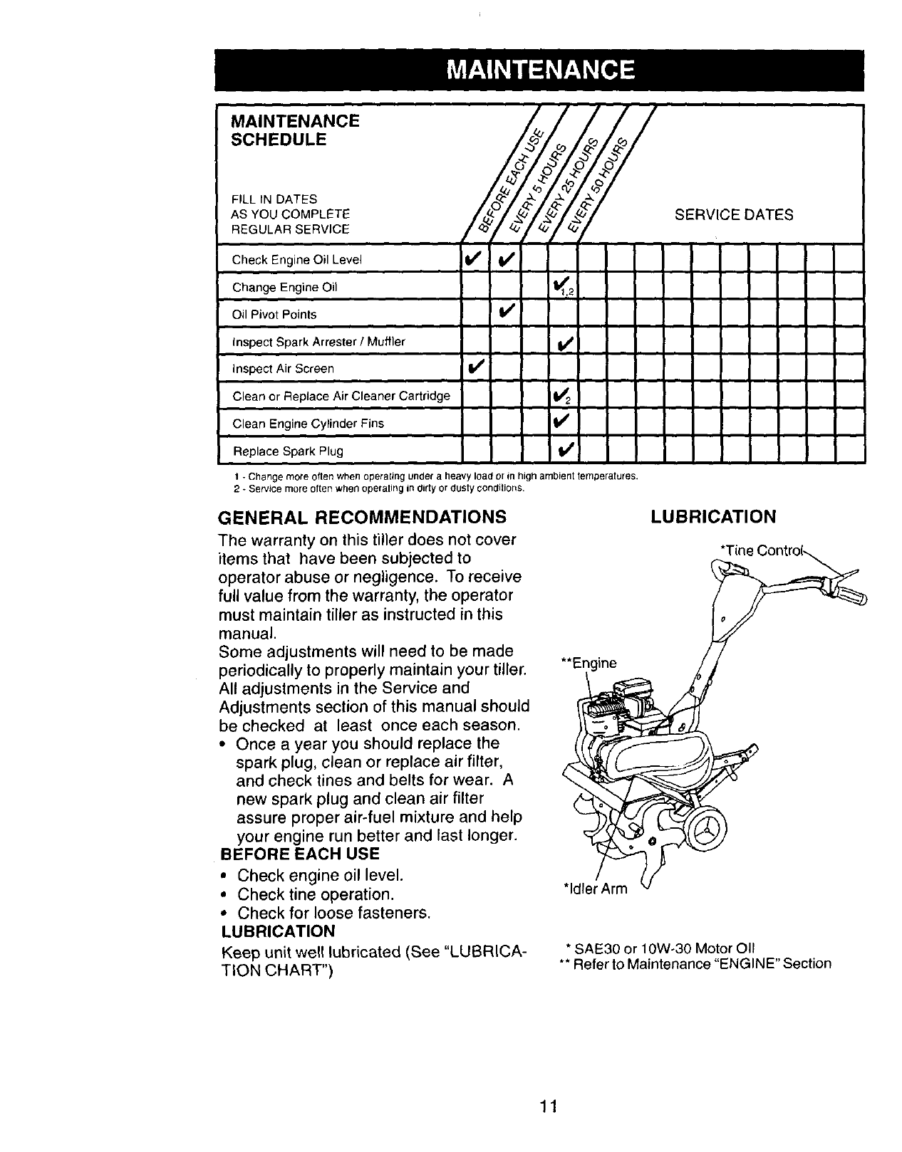 lubricated, and tuned up according to the operating and maintenance instructions in the