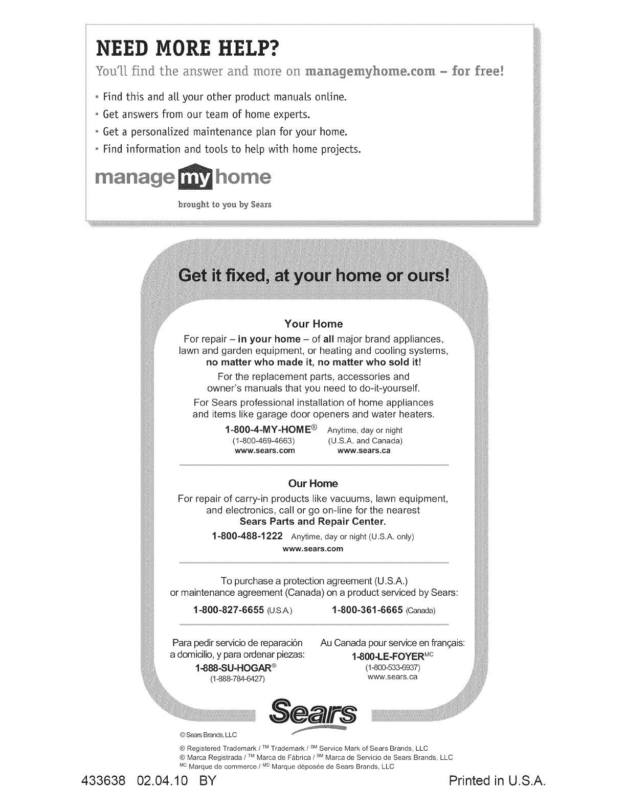 ® Registered Trademark /TMTrademark /SMService Mark of Sears Brands, LLC