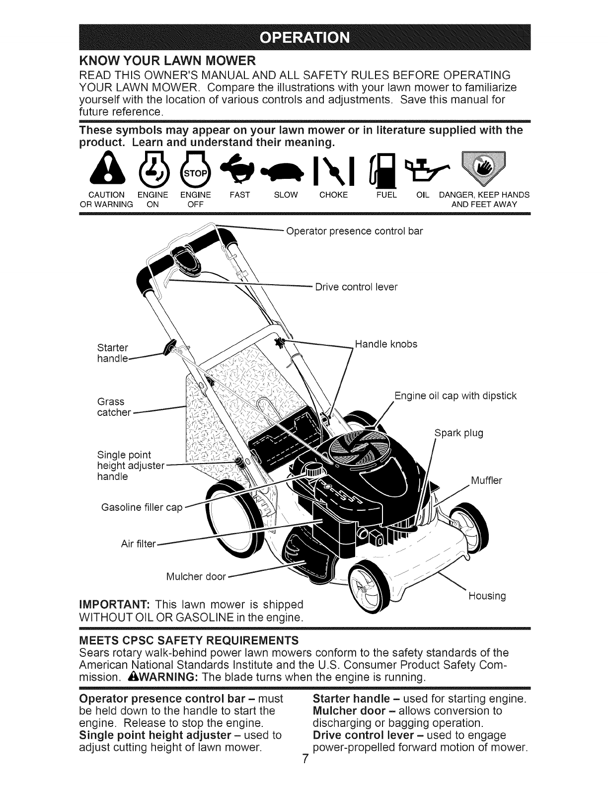 crackshafts and the failure to assemble, operate or maintain this Lawn Mower