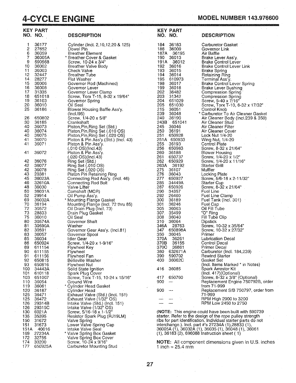 4-CYCLE ENGINE MODEL NUMBER 143.976600