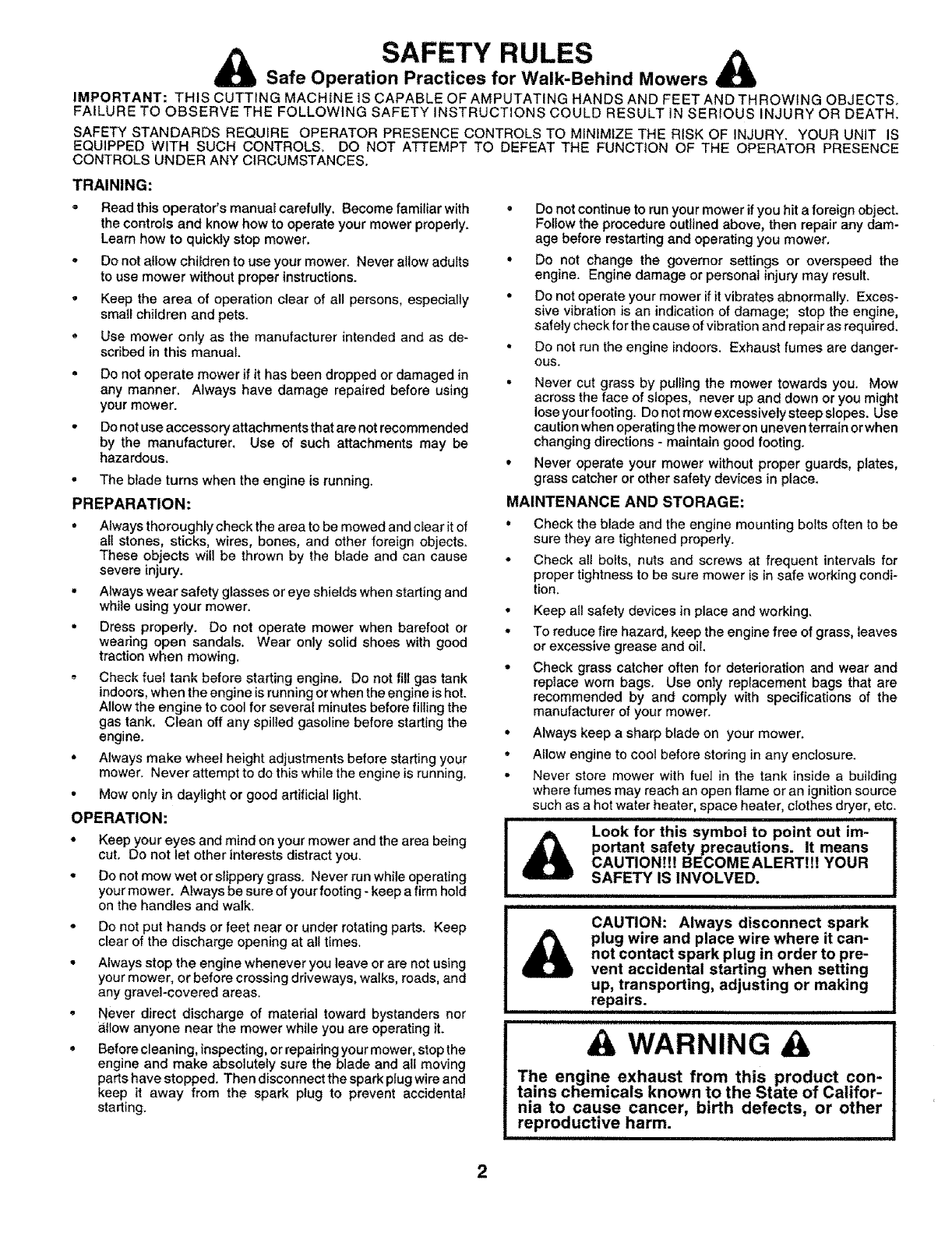 SAFETY STANDARDS REQUIRE OPERATOR PRESENCE CONTROLS TO MINIMIZE THE RISK OF INJURY. YOUR UNIT IS