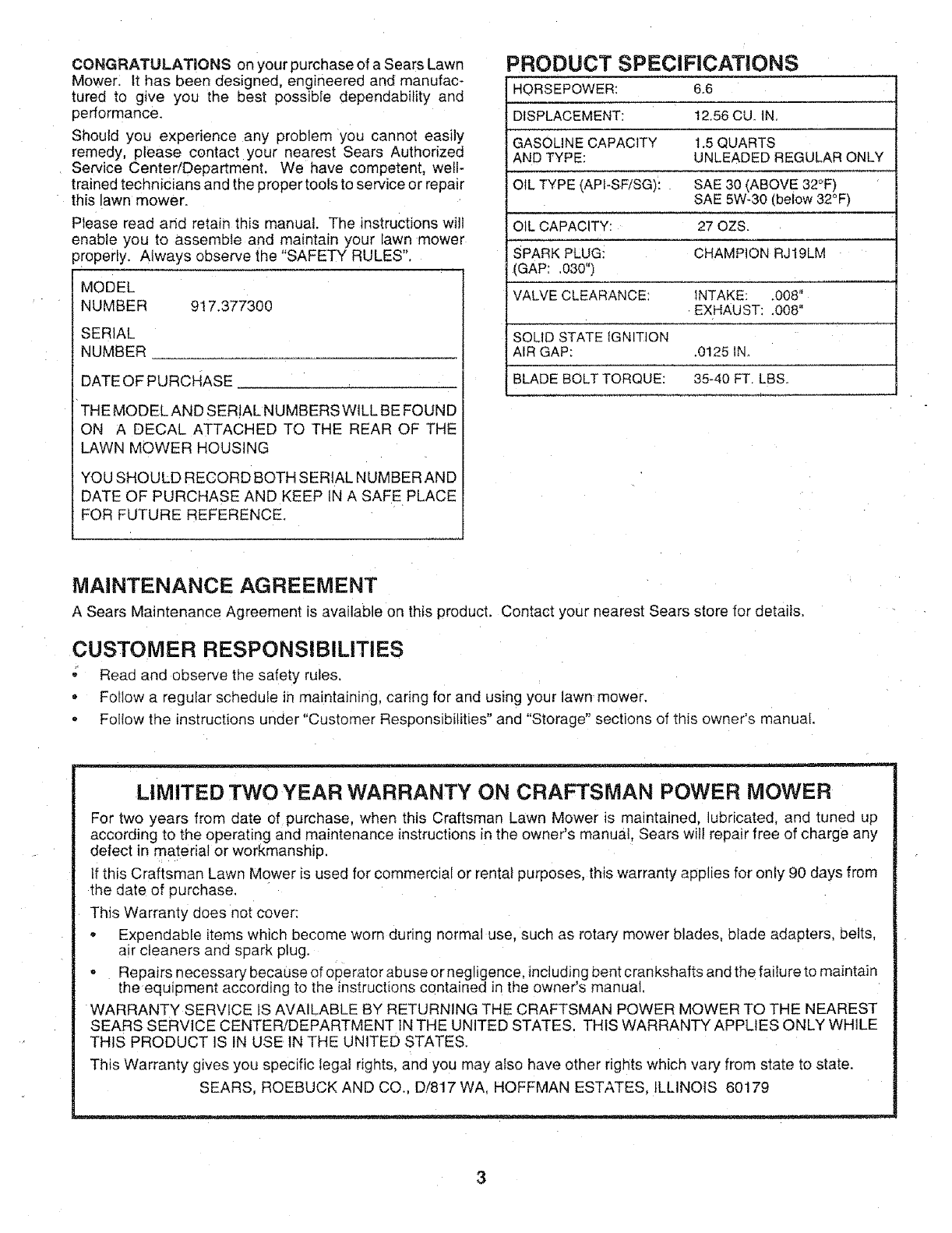 MODEL NUMBER 917.377300 OWNER'SMANUAL