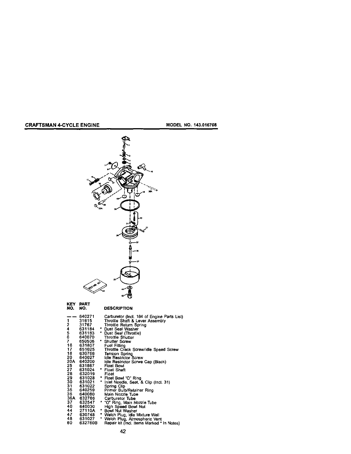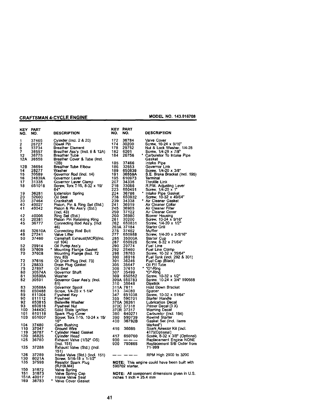 CRAFTSMAN 4-CYCLE ENGINE MODEL NO, 143,016708