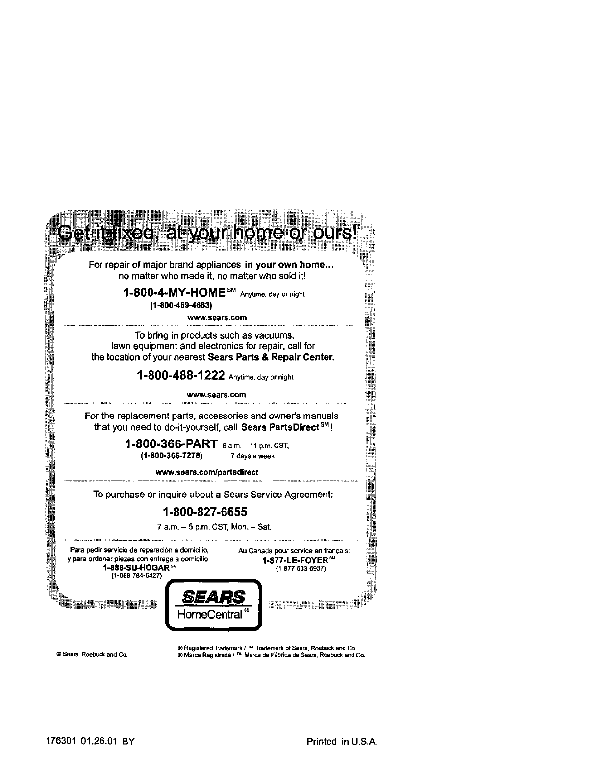 ® Registered Trademark /TmTrademark of Sears, Roebuck and Co.