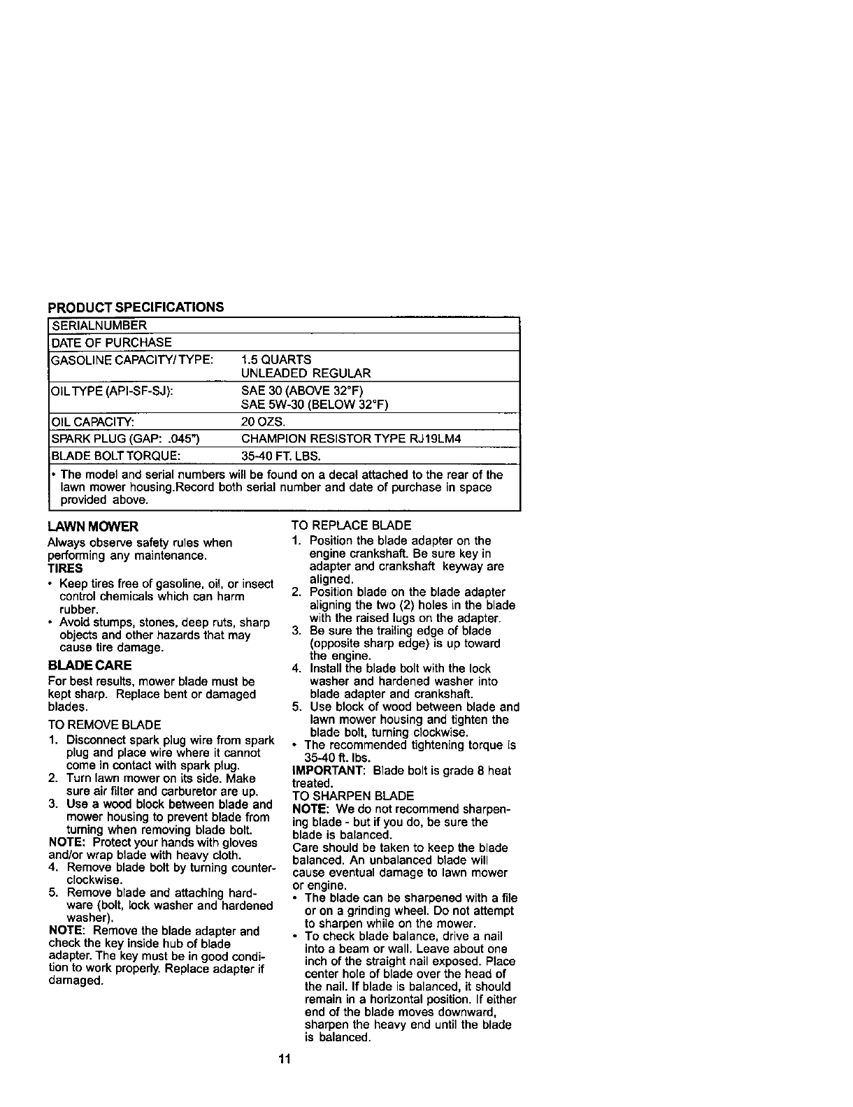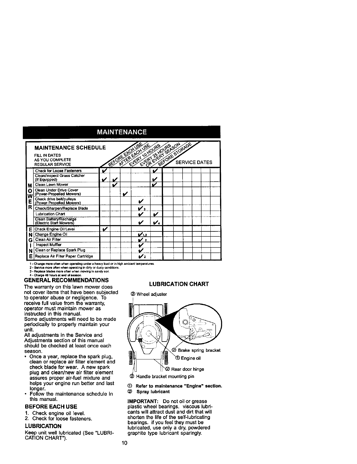 Warranty service is available by returning the Craftsman power mower to the nearest