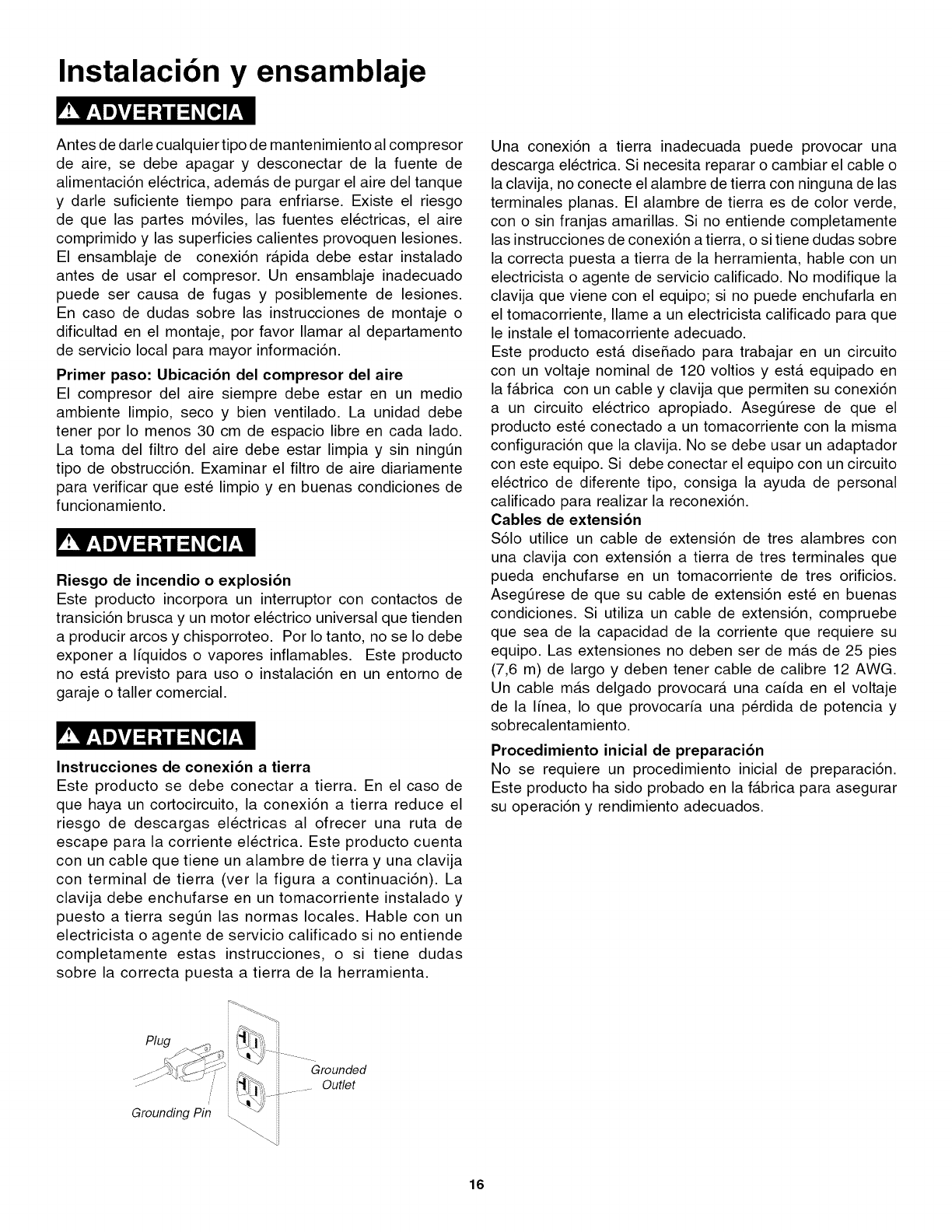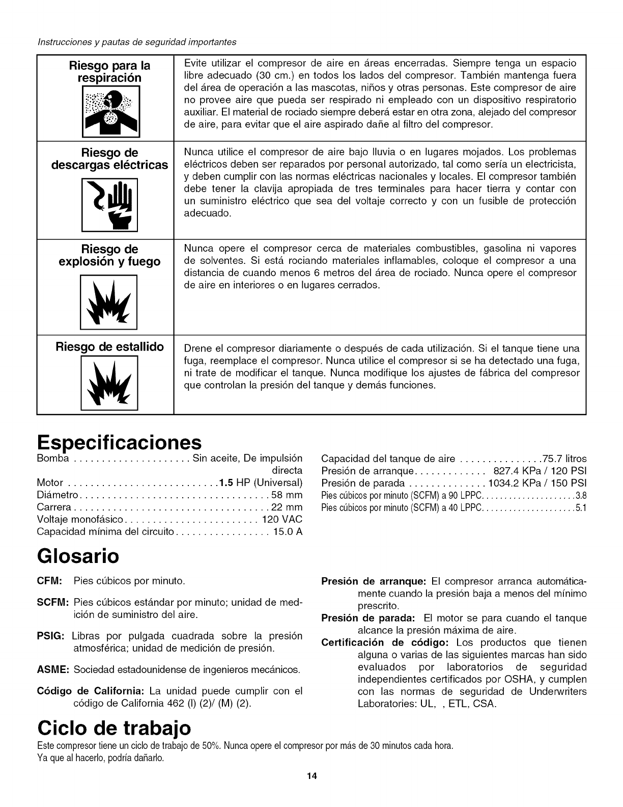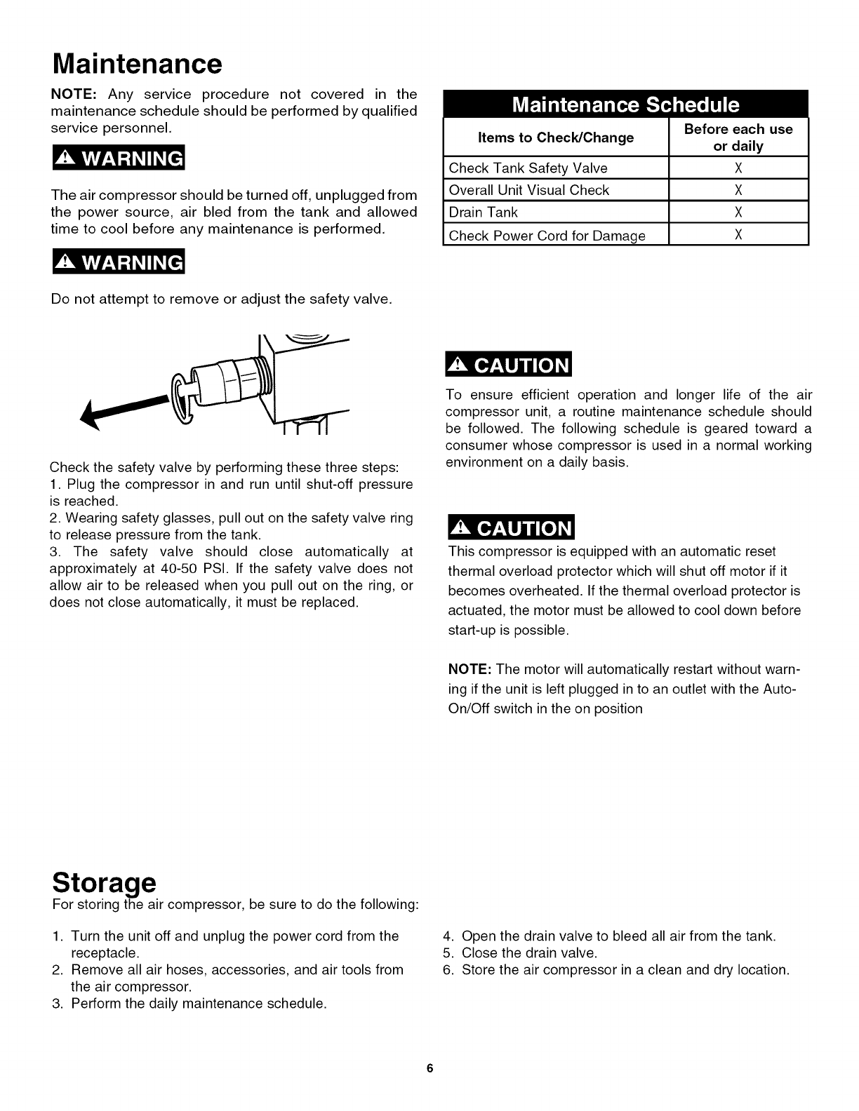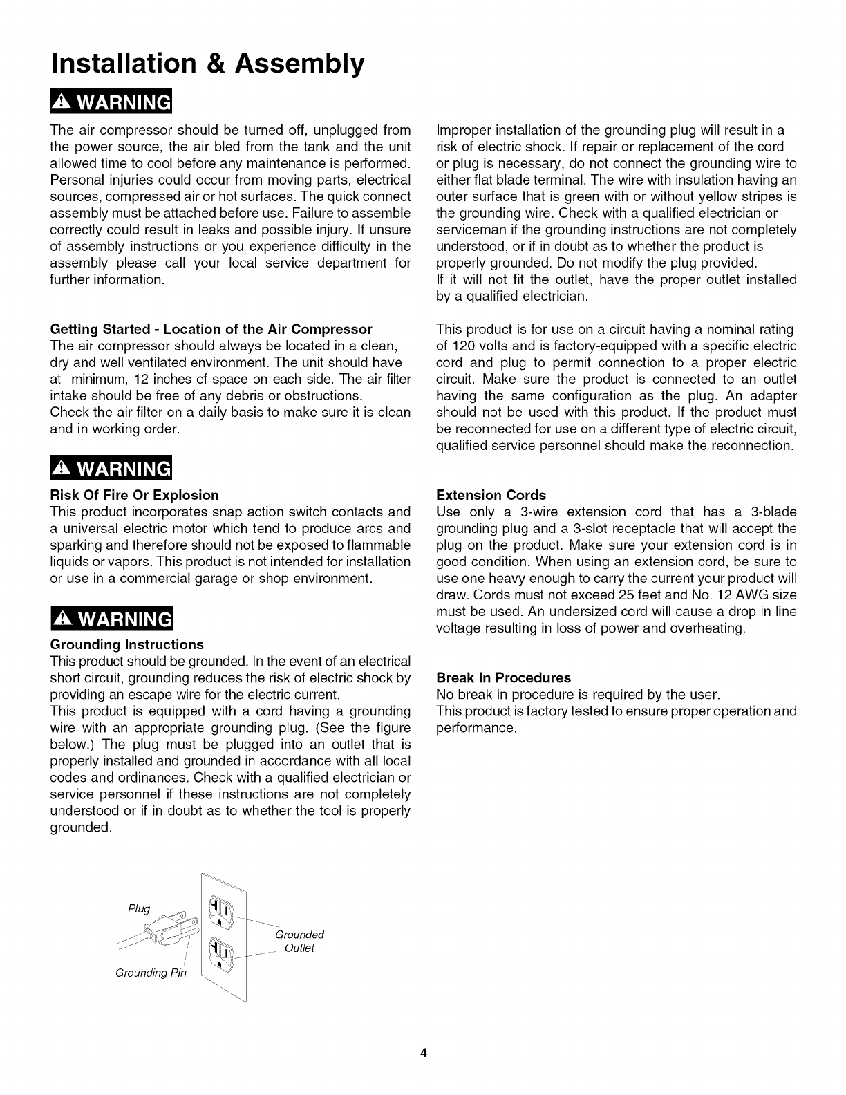 user while operating and storing the air compressor. We utilize the symbols below to allow the reader to recognize important