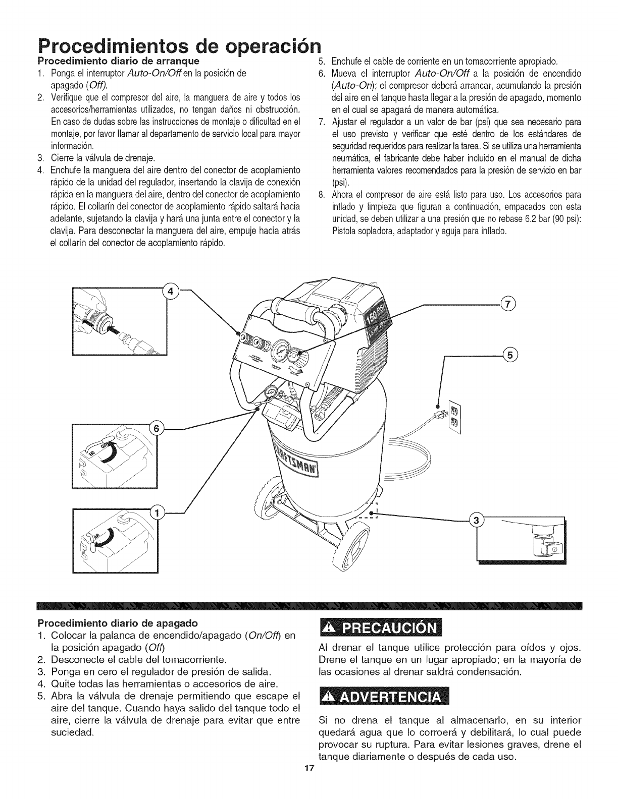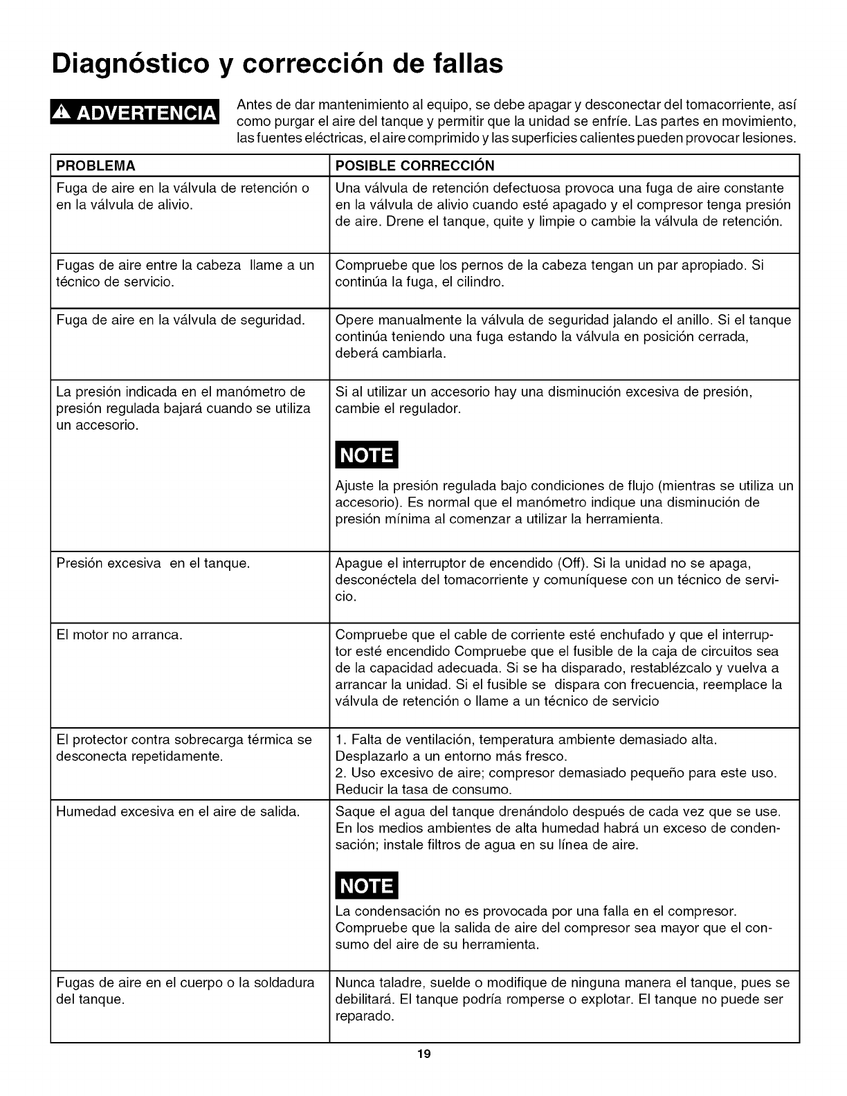 compressor is in use. Turn off the air compressor and drain the air tank before