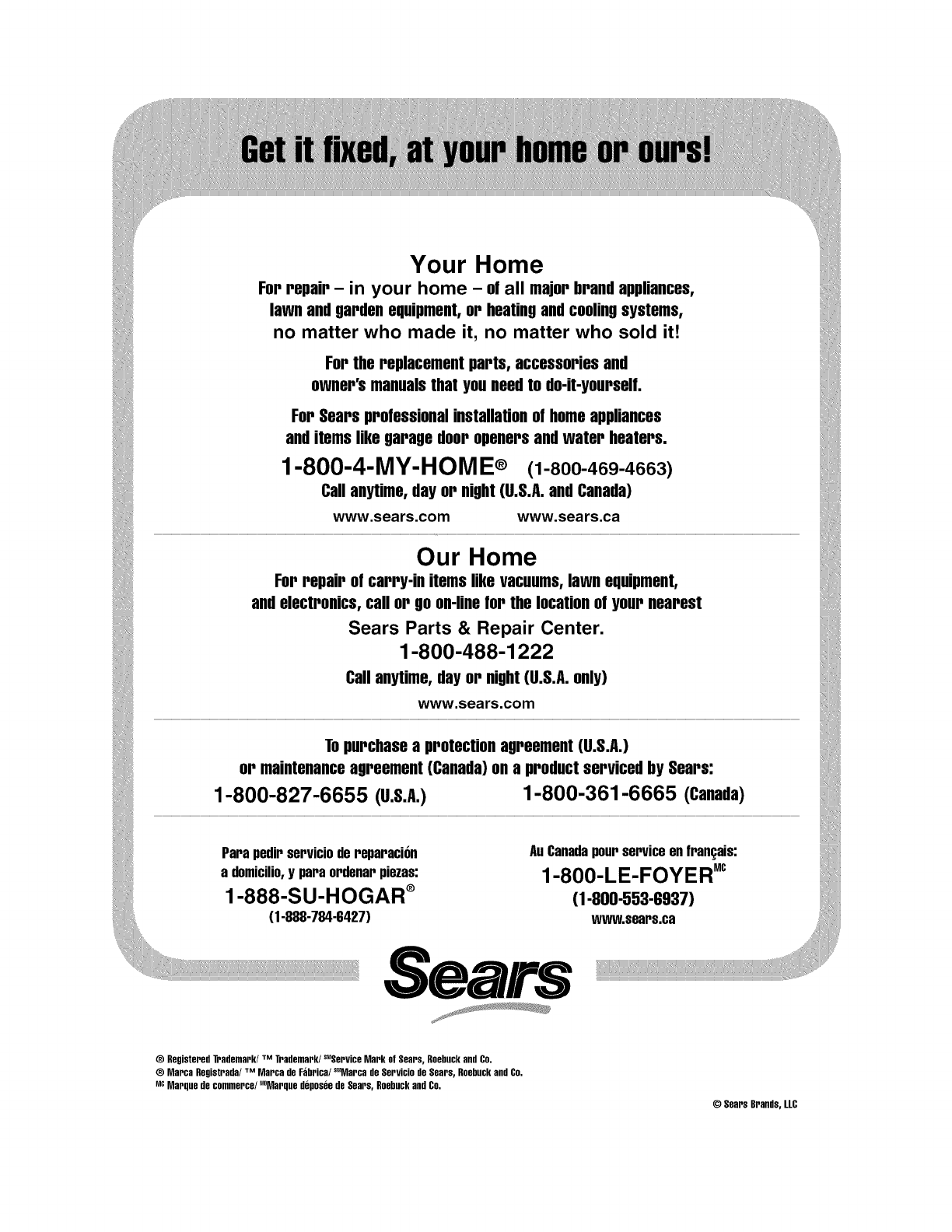 ®Marca Registrada/ Marca de F_ibrica/ Marca de Servicio de Sears, Roebuckand Co.