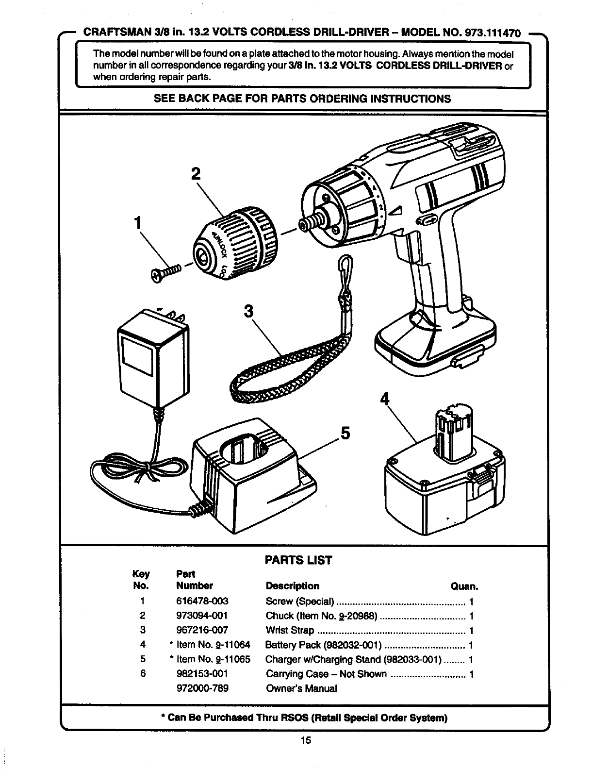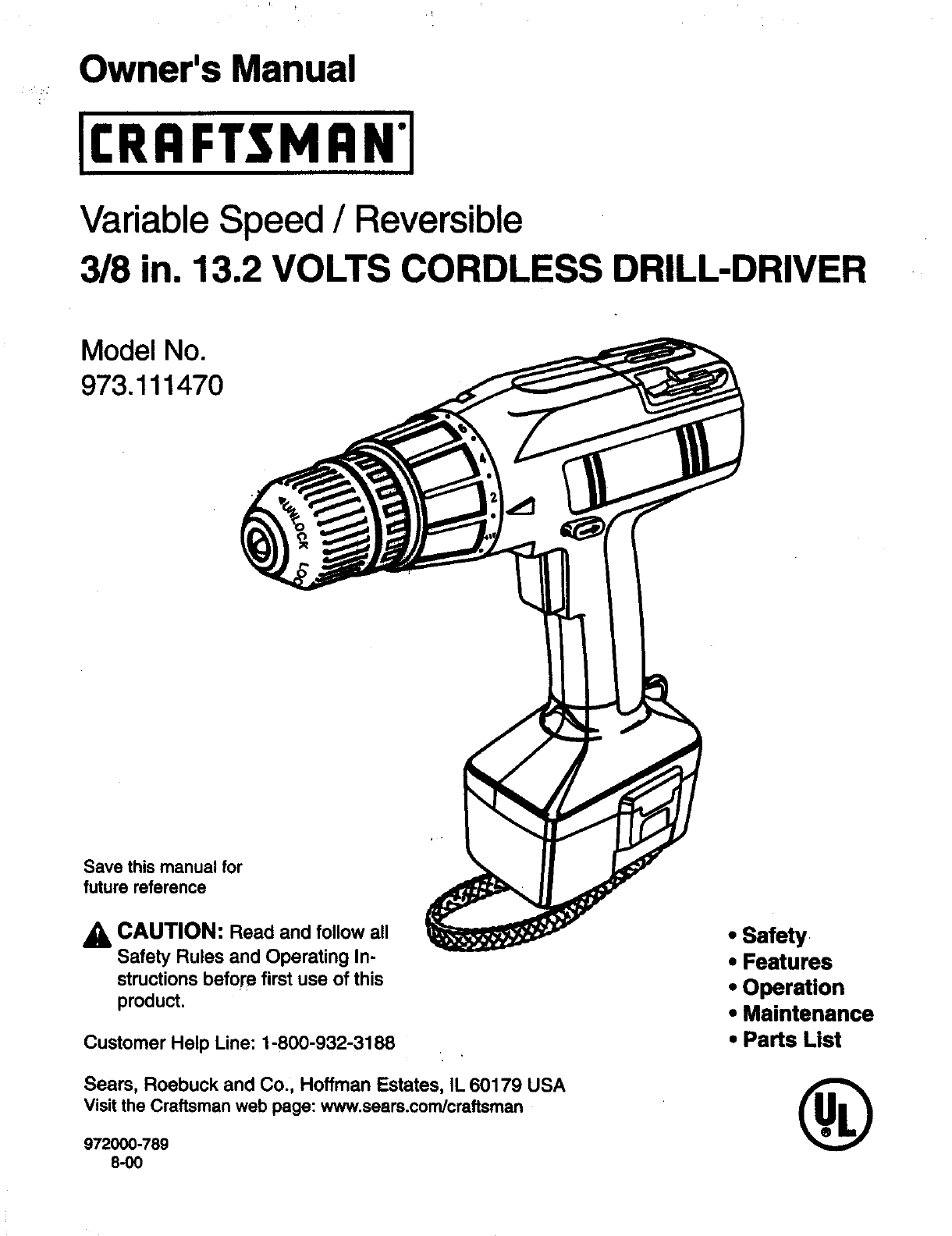 973111470 973111470 CRAFTSMAN DRILL-DRIVER - Manuals and Guides L0010559 View the owners manual for your CRAFTSMAN DRILL-DRIVER #973111470. Home:Tool Parts:Craftsman Parts:Craftsman DRILL-DRIVER Manual
