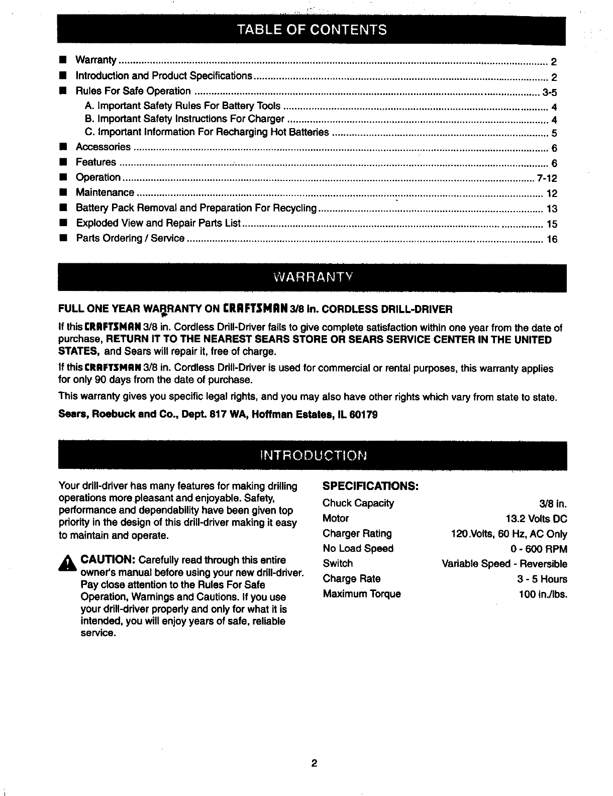 FULL ONE YEAR WARRANTY ON CRAFTSMAN3/8 in. CORDLESS DRILL-DRIVER