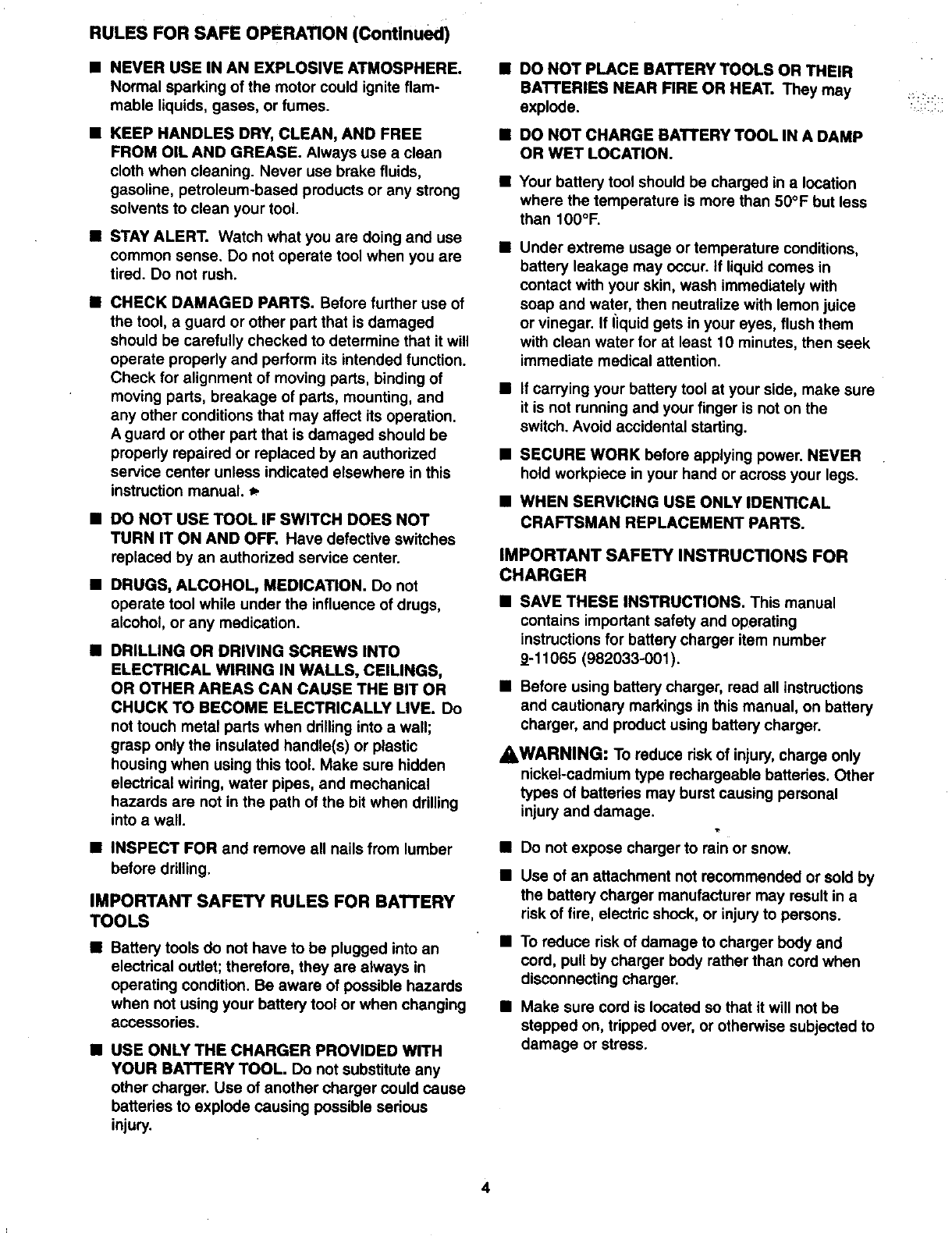 A. Important Safety Rules For Battery Tools .............................................................................................. 4