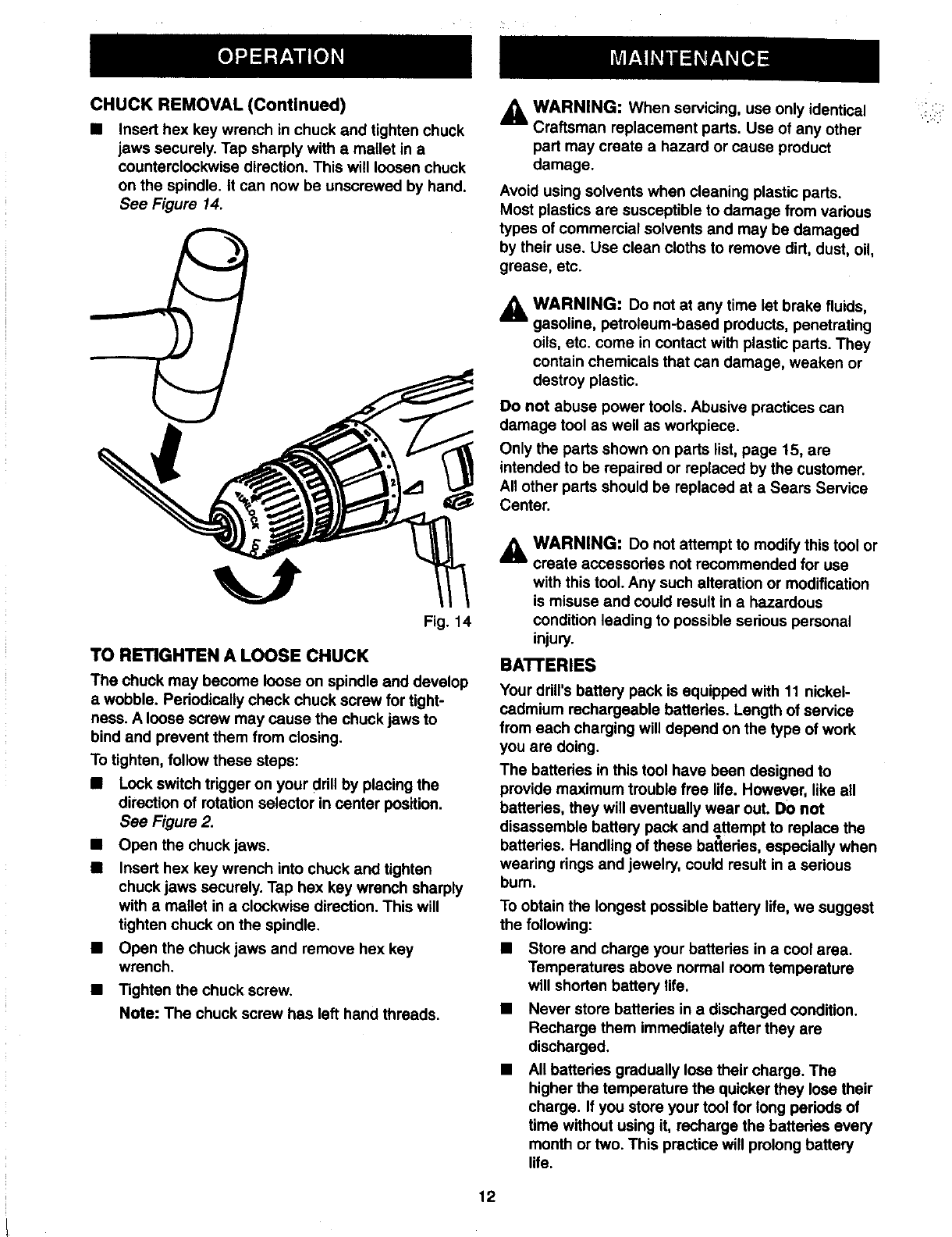 CRAFTSMAN3/8 In. 13.2VOLTSCORDLESSDRILL-DRIVER- MODELNO.973.111470