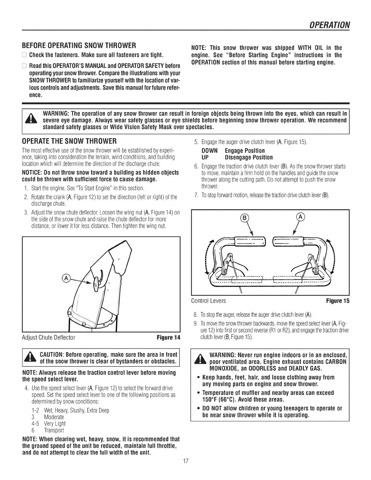 BEFOREOPERATINGSNOWTHROWER................................................................................. 17
