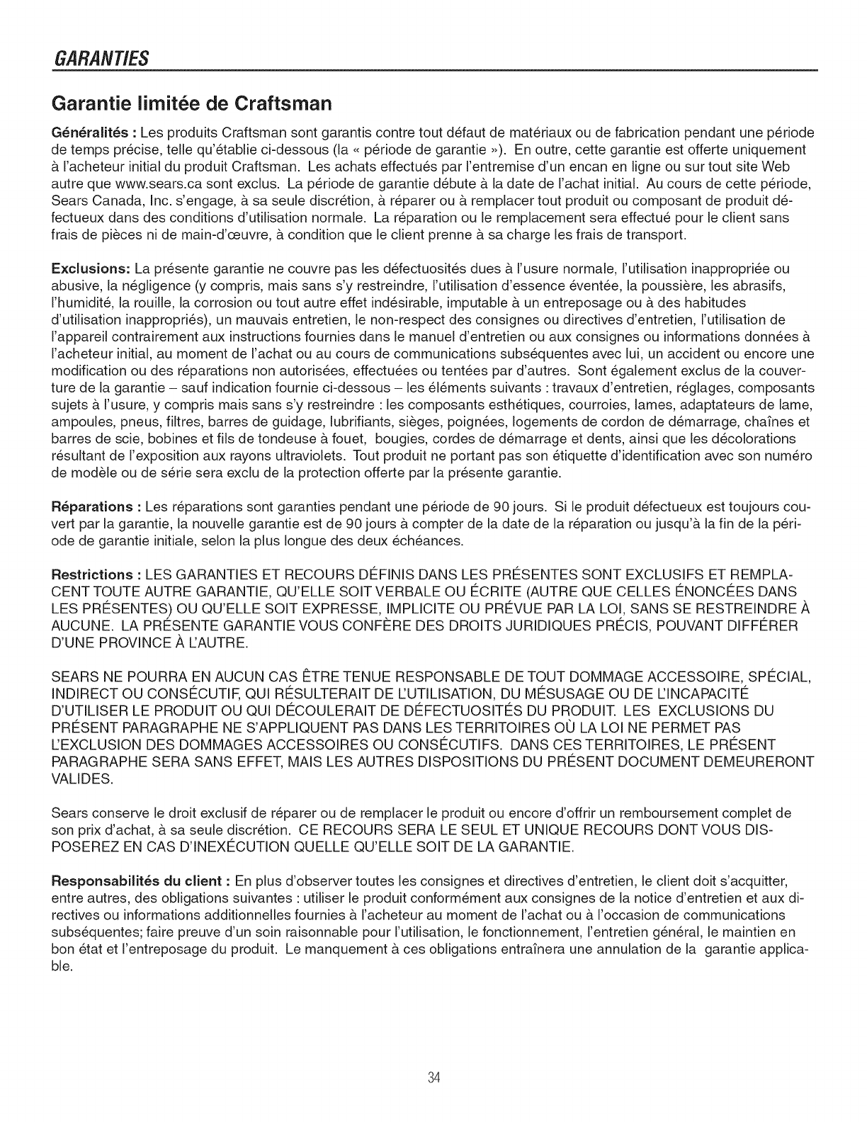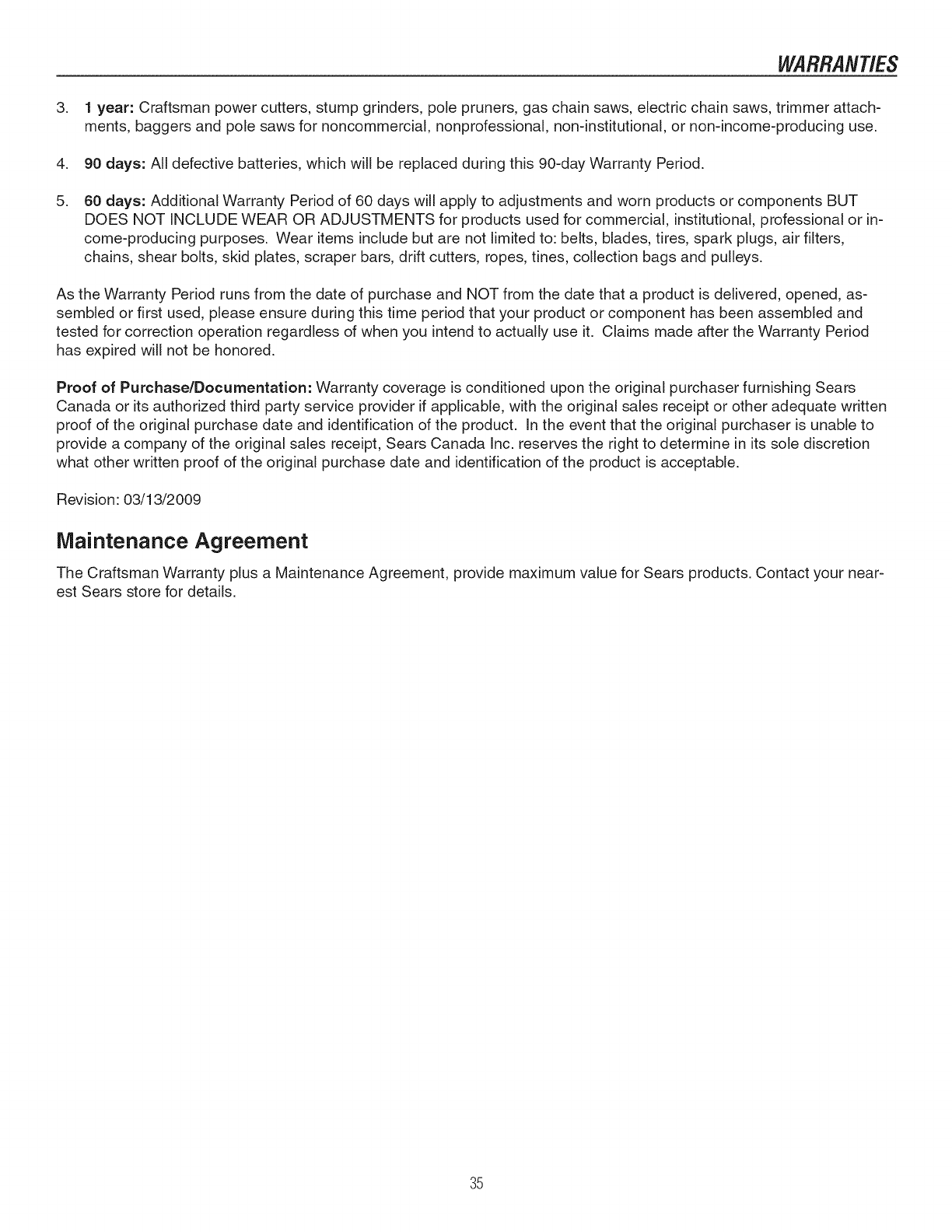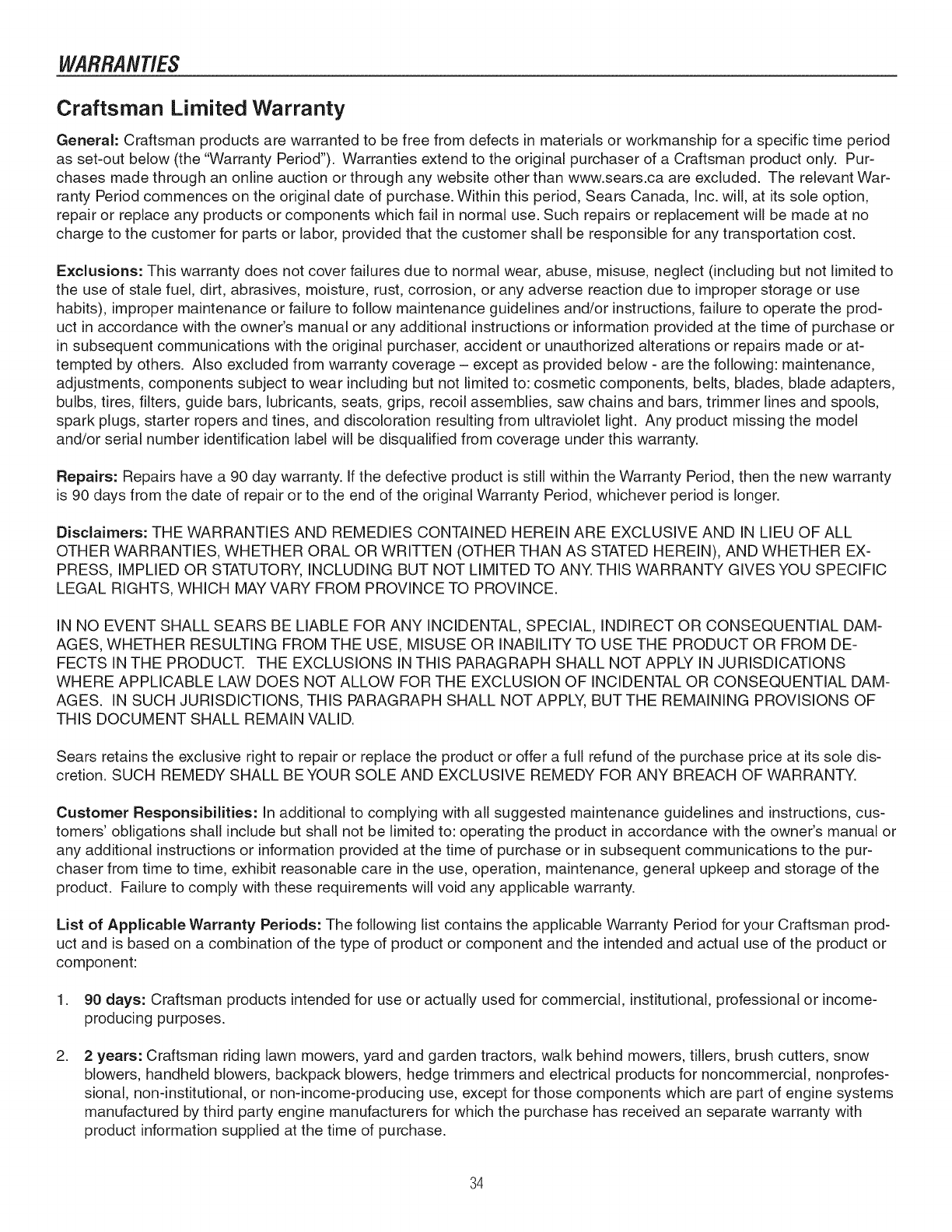brand. When operated and maintained according to the instructionsinthis manual,your Craftsman product will provide many years of