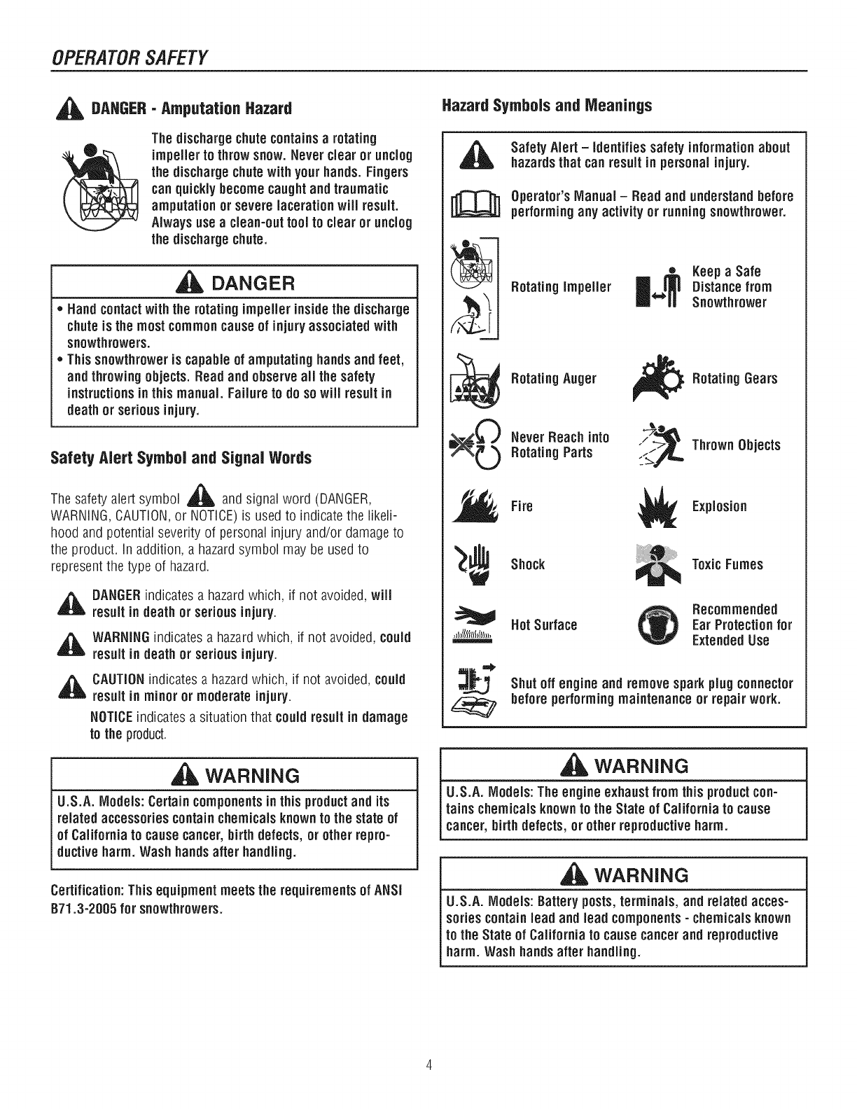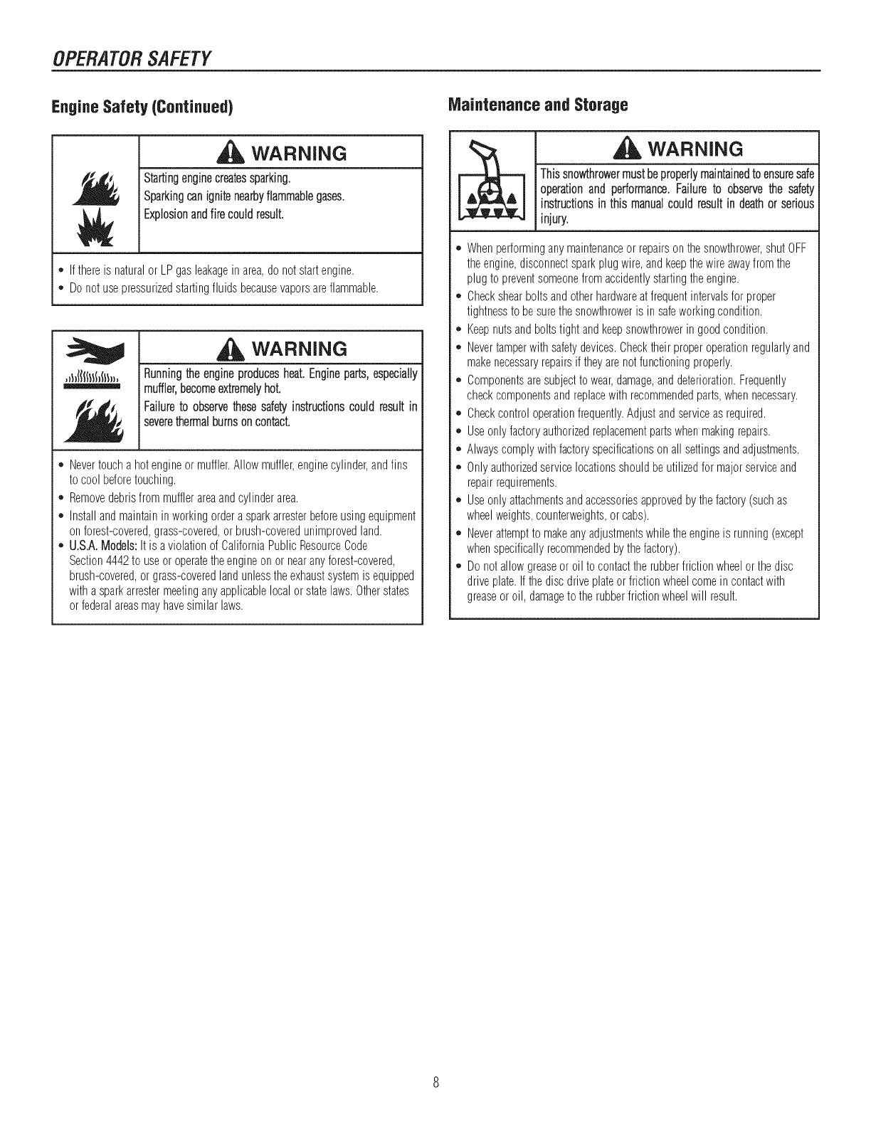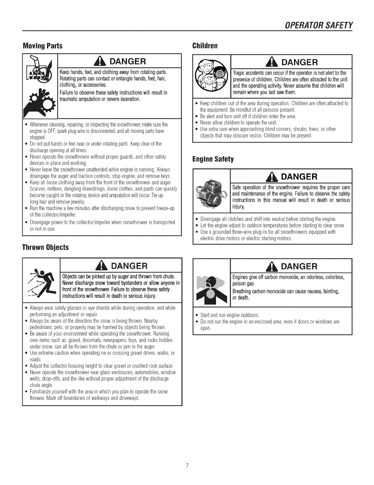 This manual contains safety information to makeyou aware of the hazardsand risks associatedwith snow throwers and how to avoid