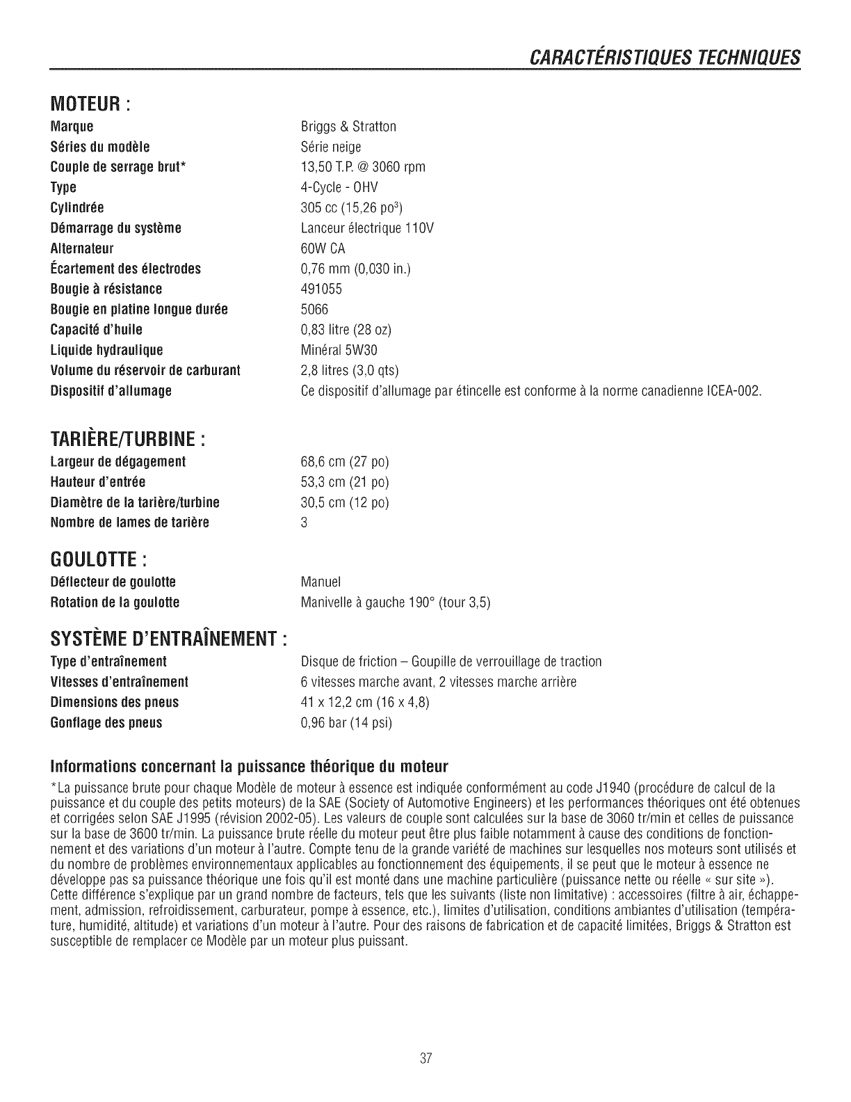 sur la basede 3600 tr/min. La puissance brute reelledu moteur peut etre plus faible notamment _ causedes conditions de fonction-