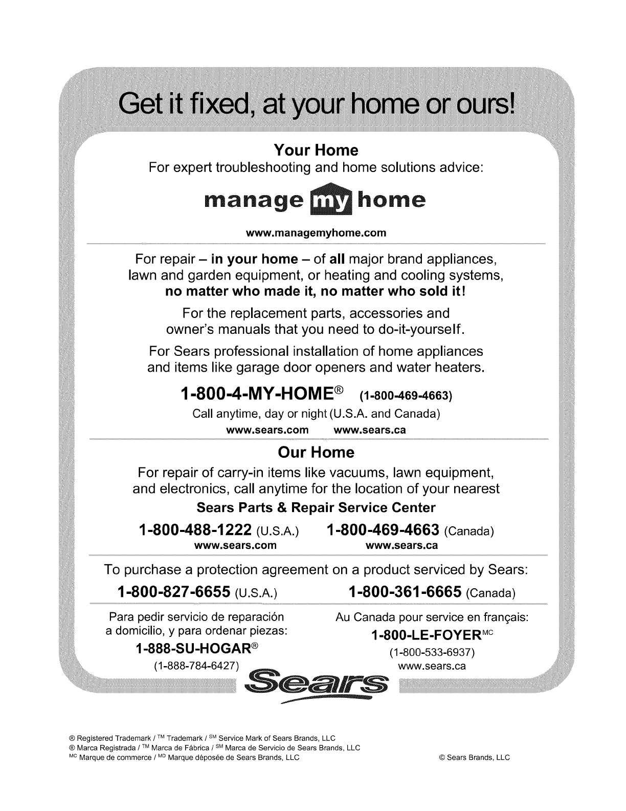 ® Registered Trademark /TMTrademark /SMService Mark of Sears Brands, LLC
