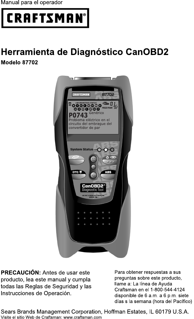 Craftsman Canobd Diagnostic Tool Owners Manual Espanol 87702 _S_