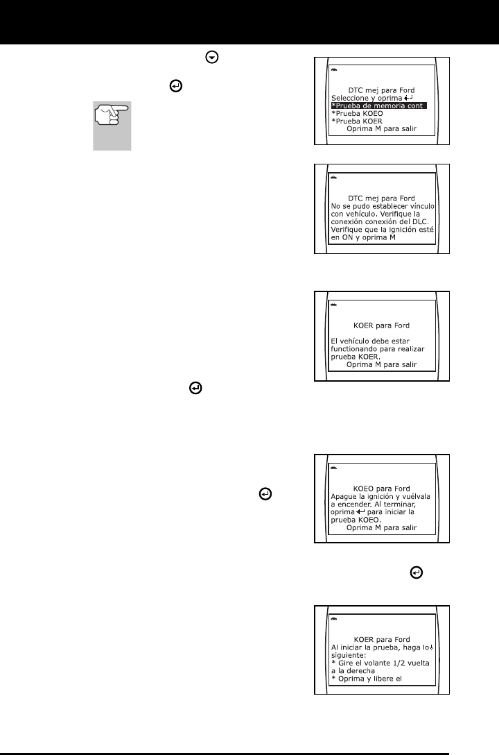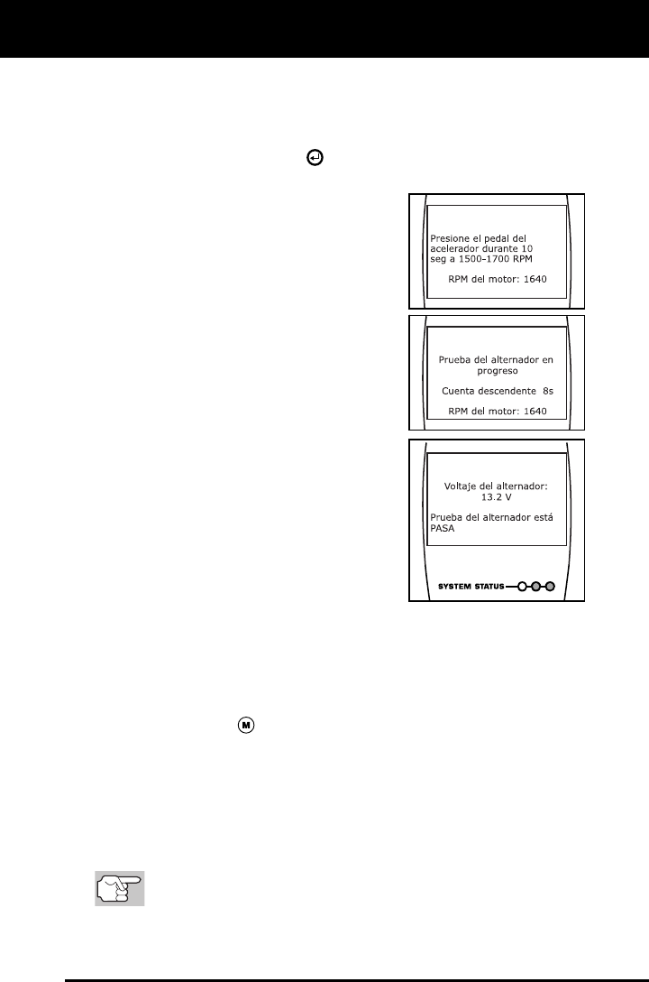 monitor del vehículo para que ejecute y termine su prueba de