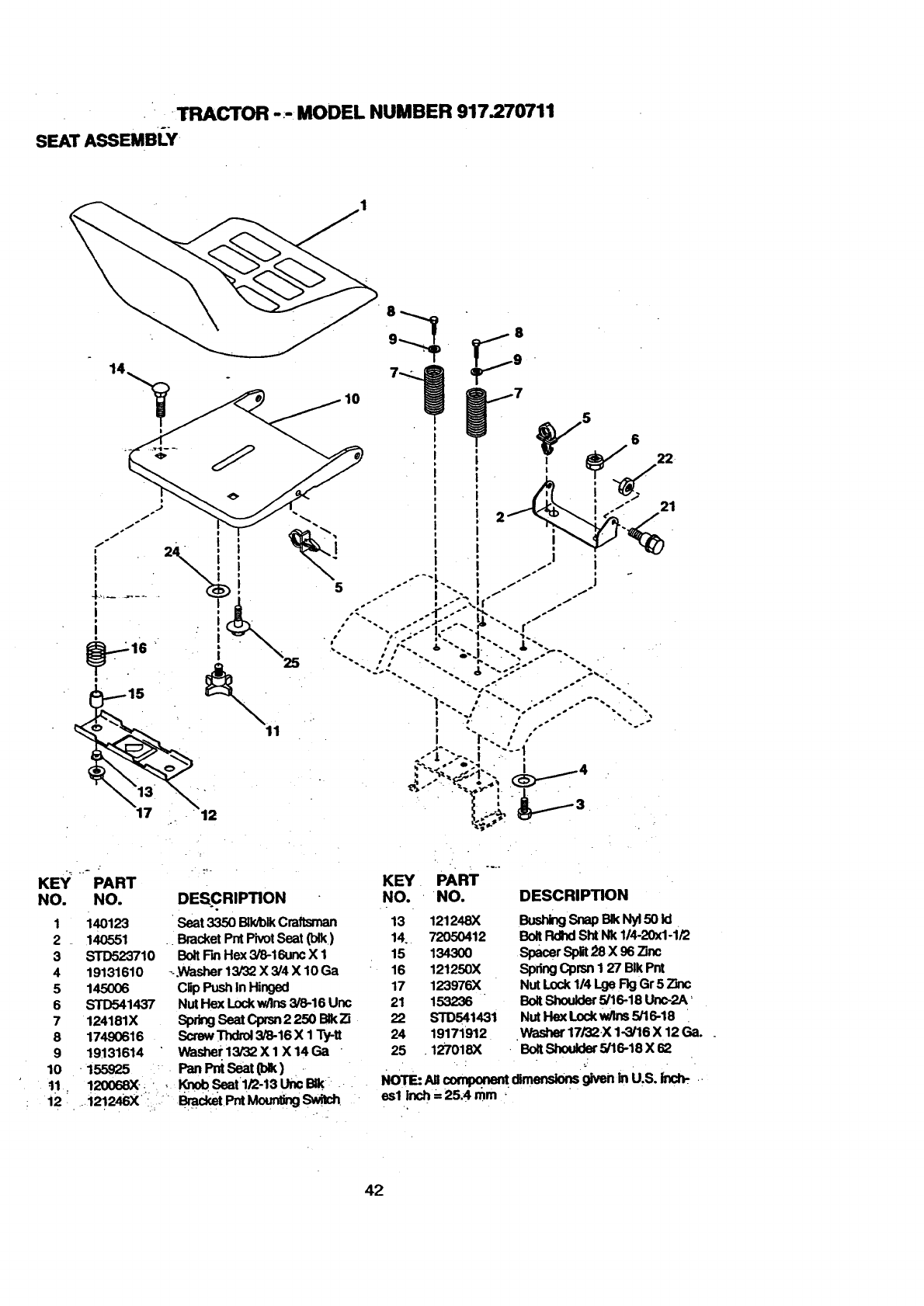 917270711 917270711 CRAFTSMAN LAWN TRACTOR - Manuals and Guides 98080222 View the owners manual for your CRAFTSMAN LAWN TRACTOR #917270711. Home:Lawn & Garden Parts:Craftsman Parts:Craftsman LAWN TRACTOR Manual