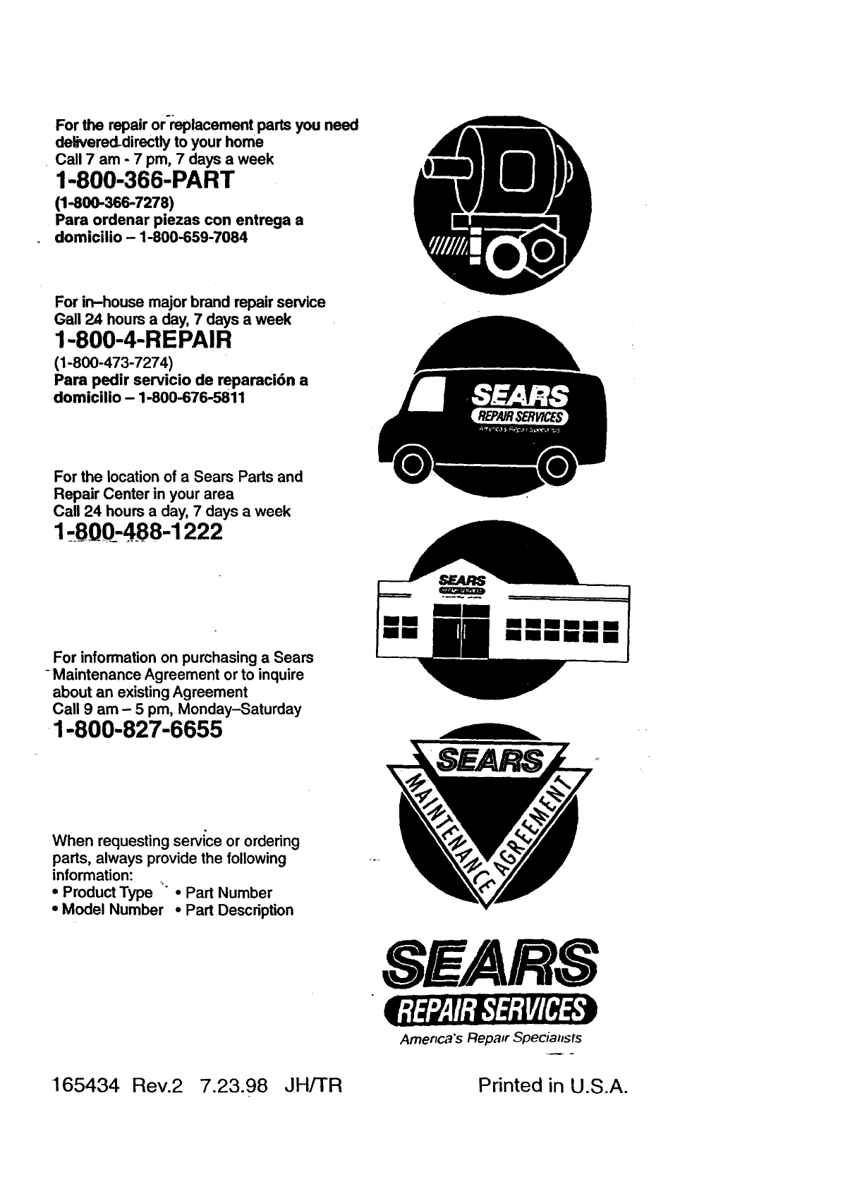 lent to your nearest Sears Service Center. (In-home warranty service will still be avail-