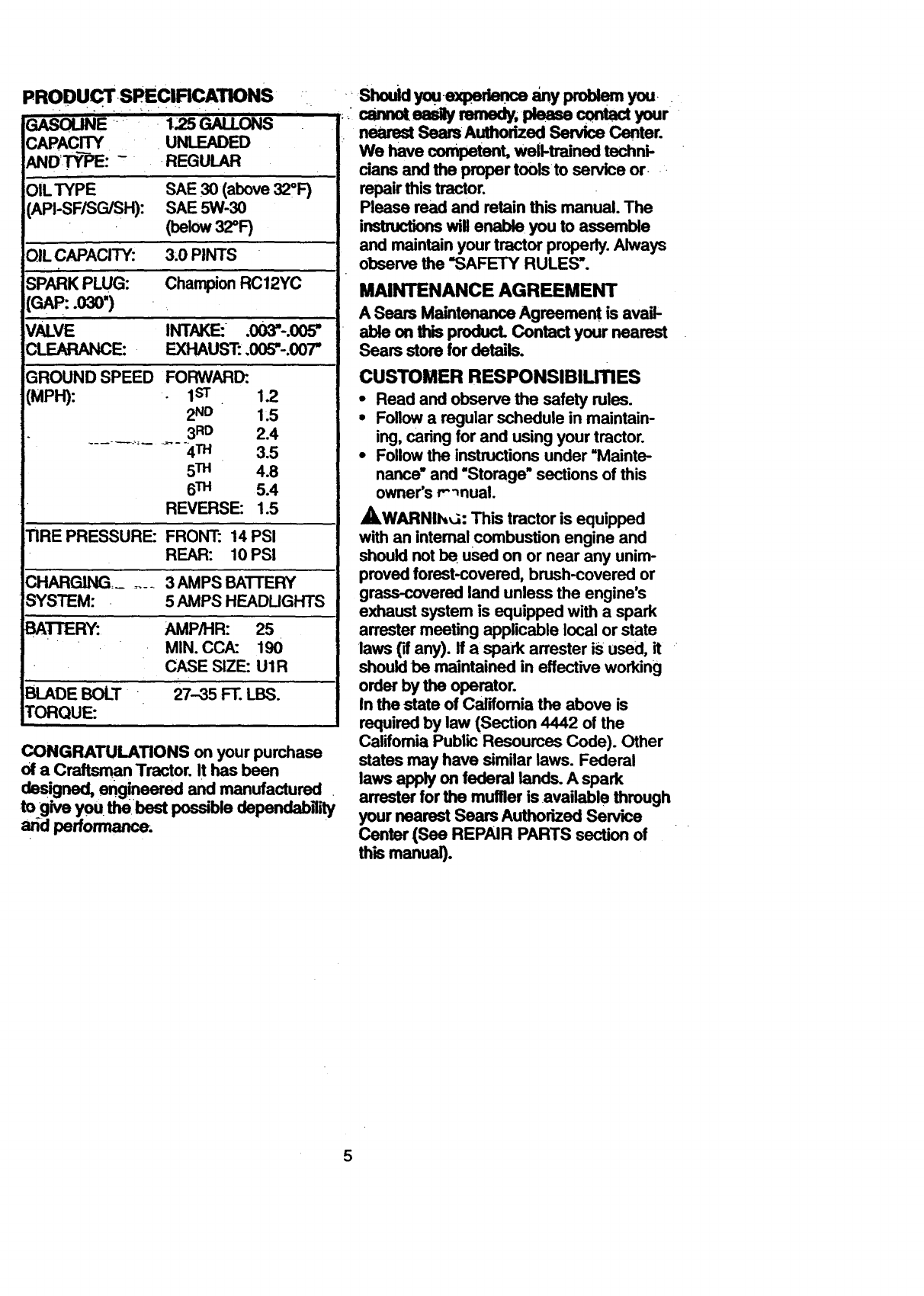 ateof purchase, warranty service is available by taking your Craftsman riding equip-