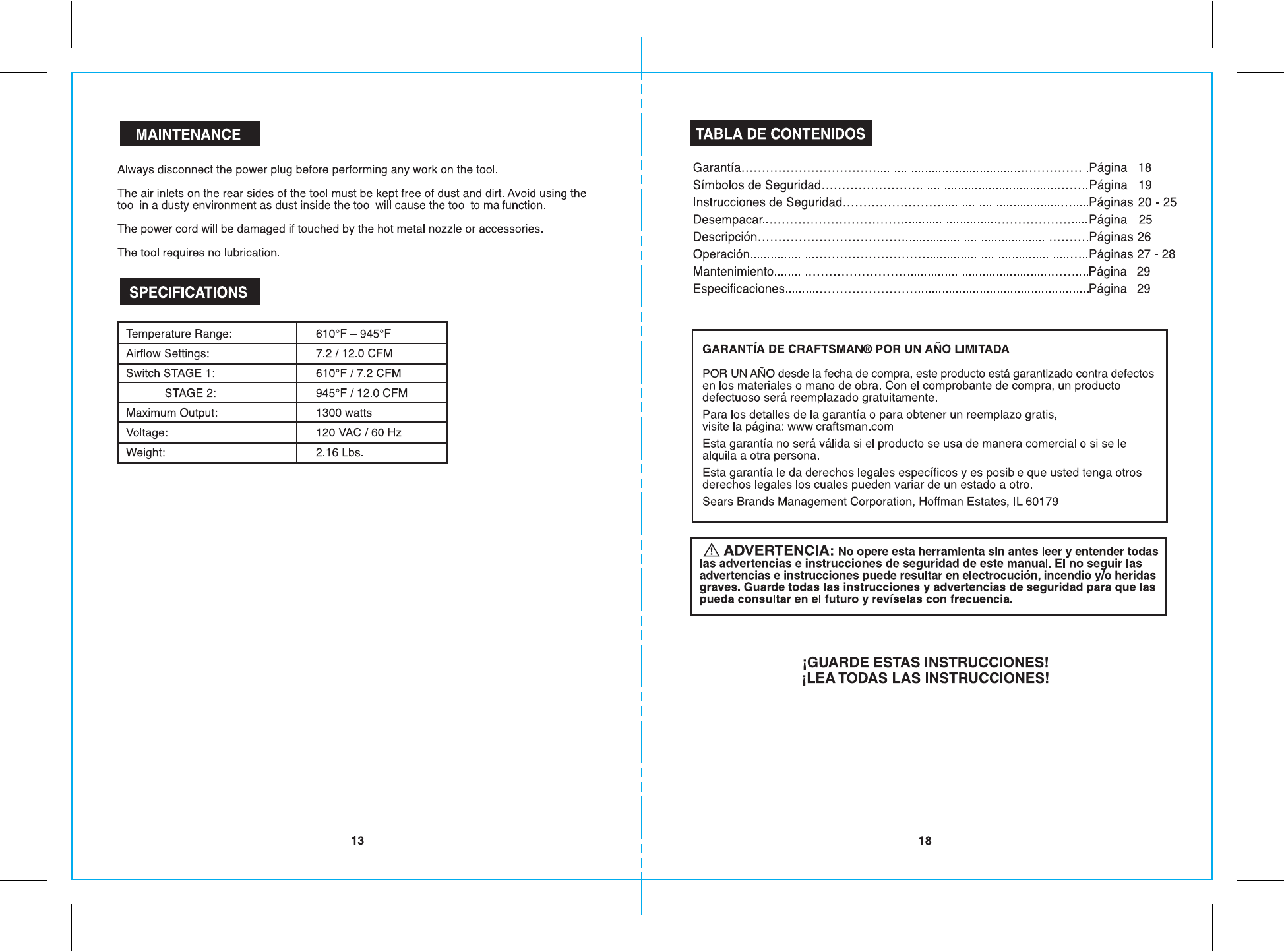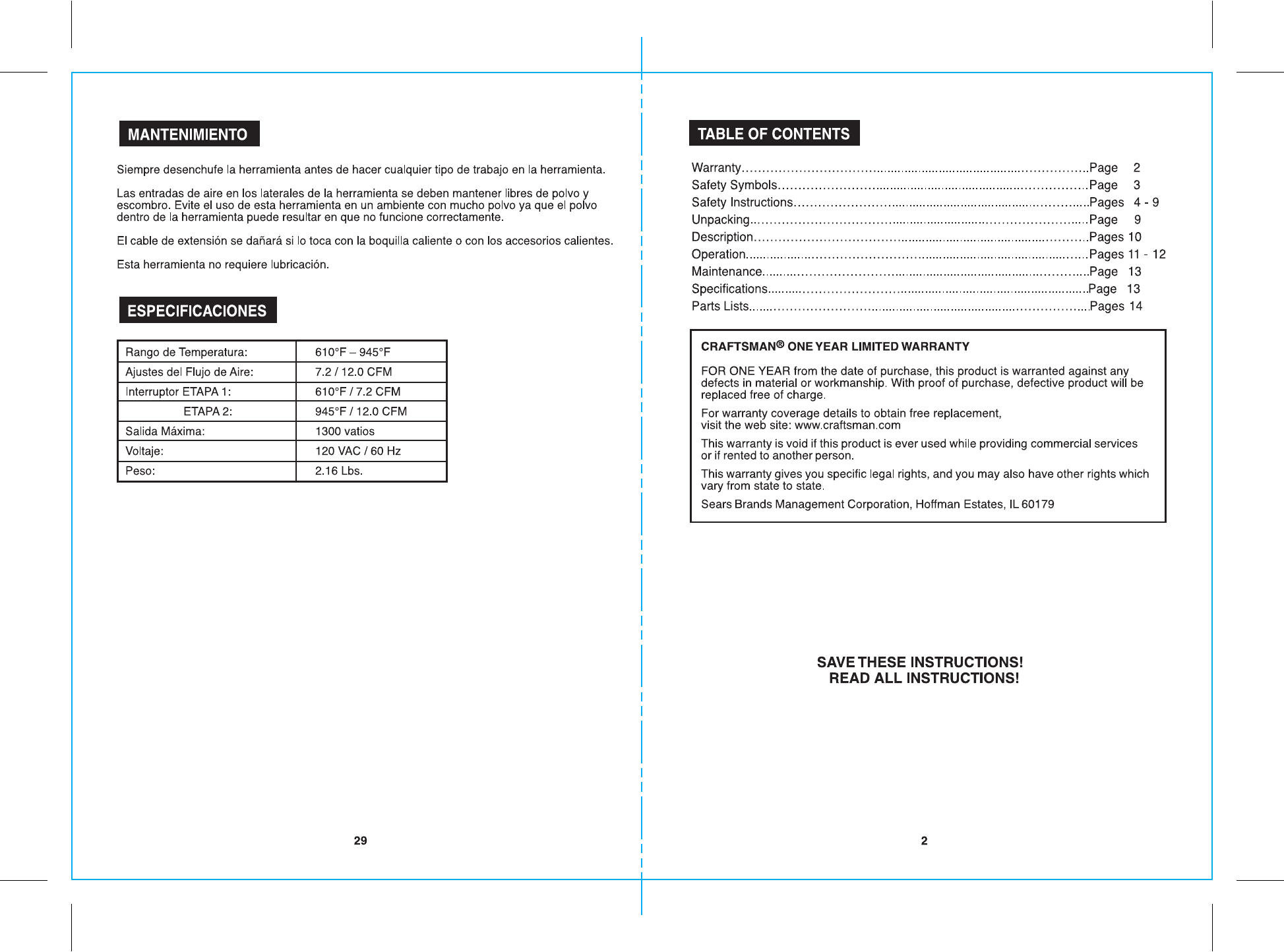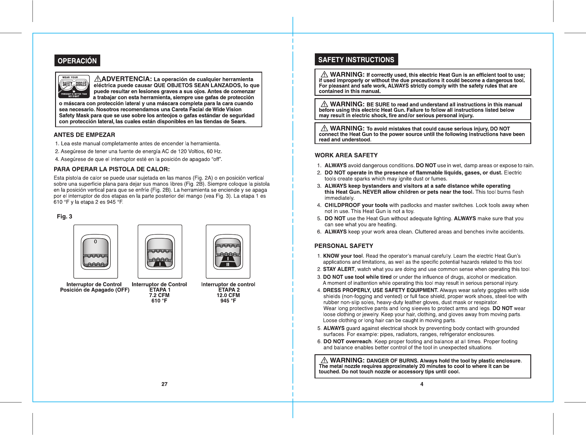 Craftsman General Purpose Heat Gun Owners Manual BC FC #4
