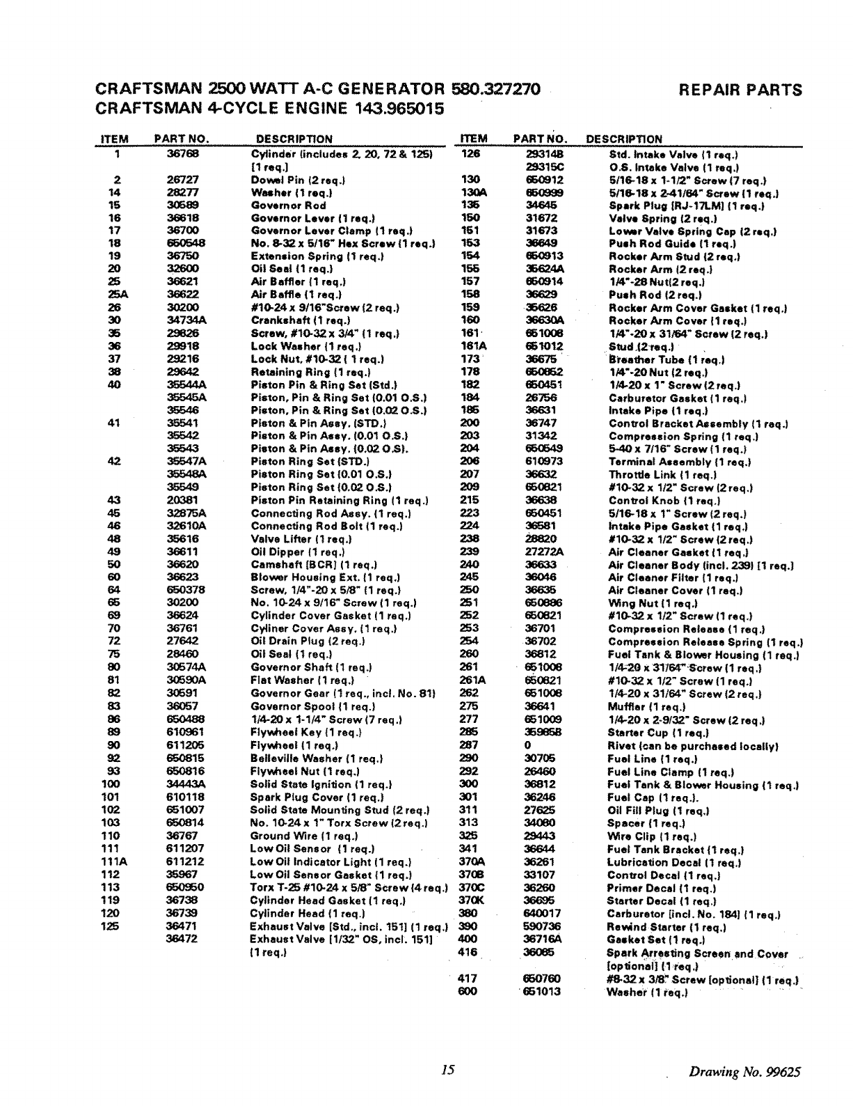 CRAFTSMAN 2500 WATT A-C GENERATOR 580327270