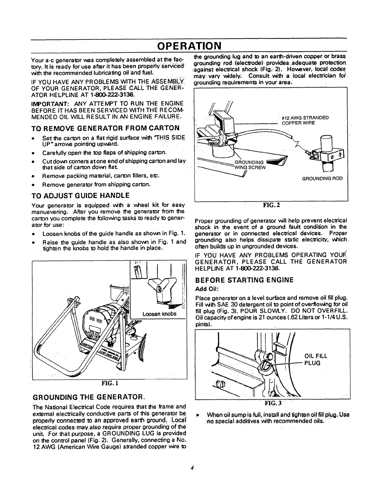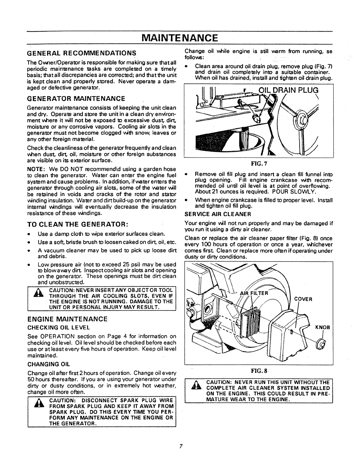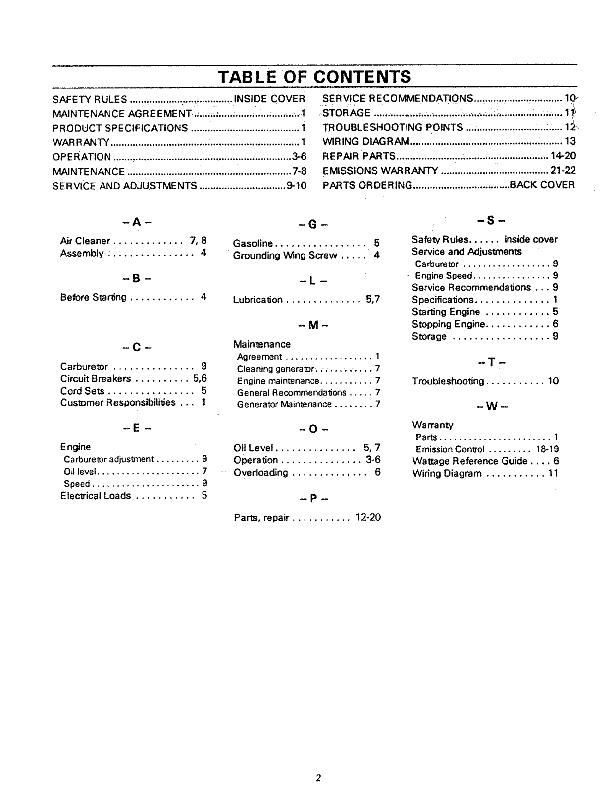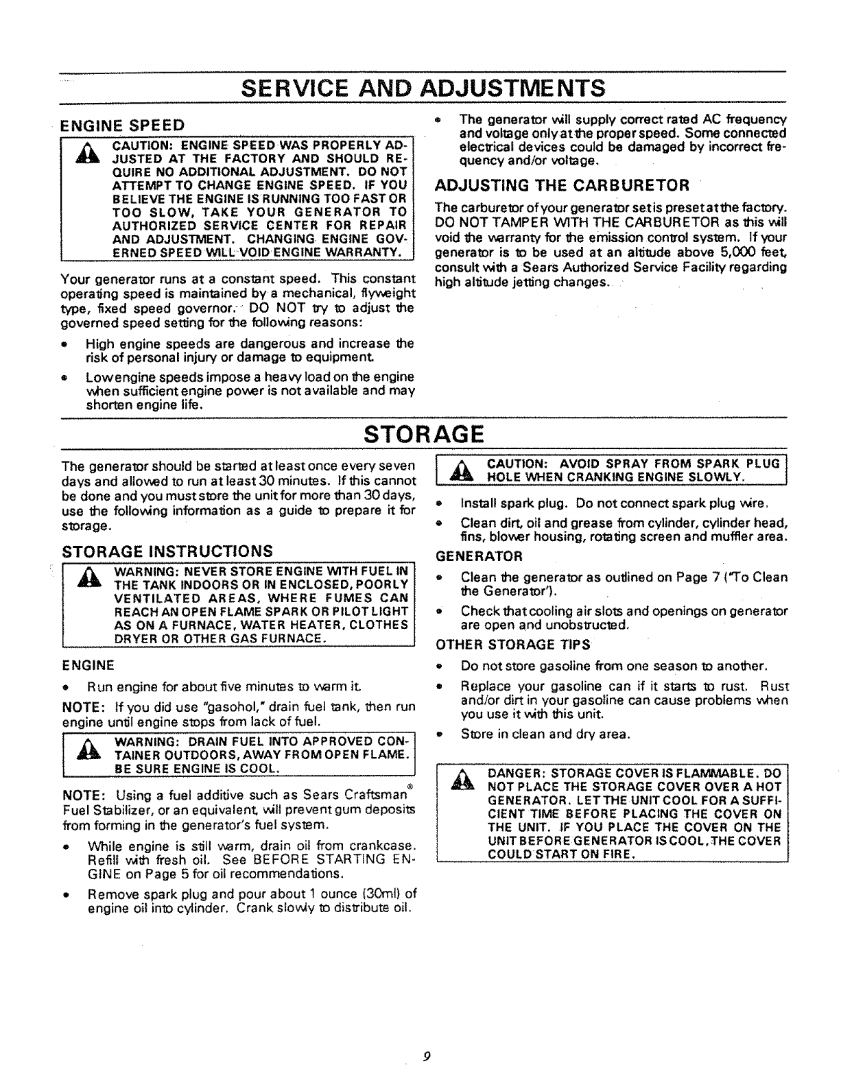 ADJUSTING OR MAKING. REPAIRS TO YOUR GENERATOR,