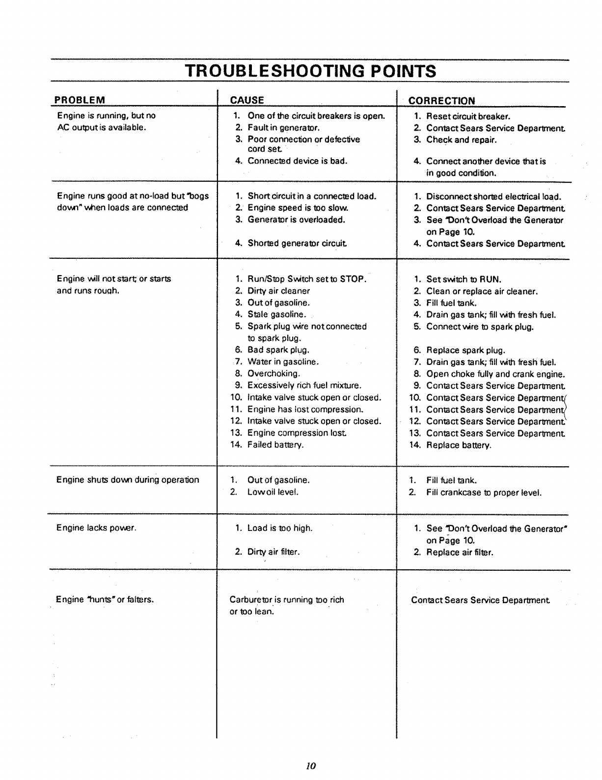 Where a warrantable condition exists, Sears wilt repair your lawn and garden equipment engine at no cost to