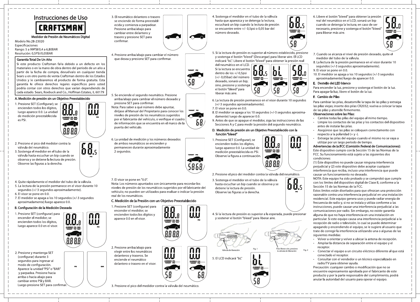 Craftsman Programmable Digital Tire Gauge Owners Manual Espanol 4366(A4line)