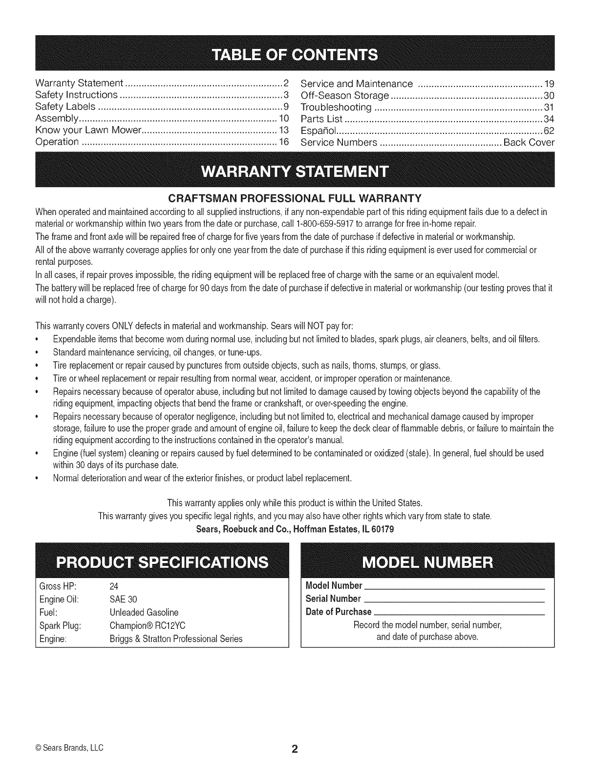 CRAFTSMAN PROFESSIONAL FULL WARRANTY