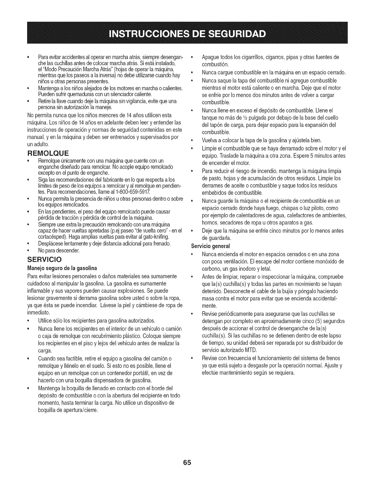 rio.MTDConsumerGroupInc le recomiendaque conservetodos losrecibos quecubrenel mantenimientode su motor,no obstanteIo cual MTDConsumerGroup