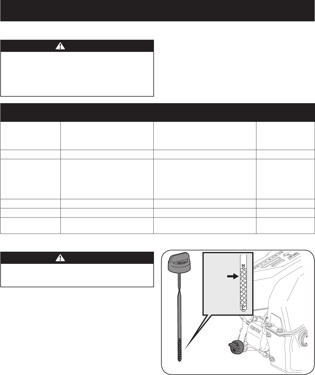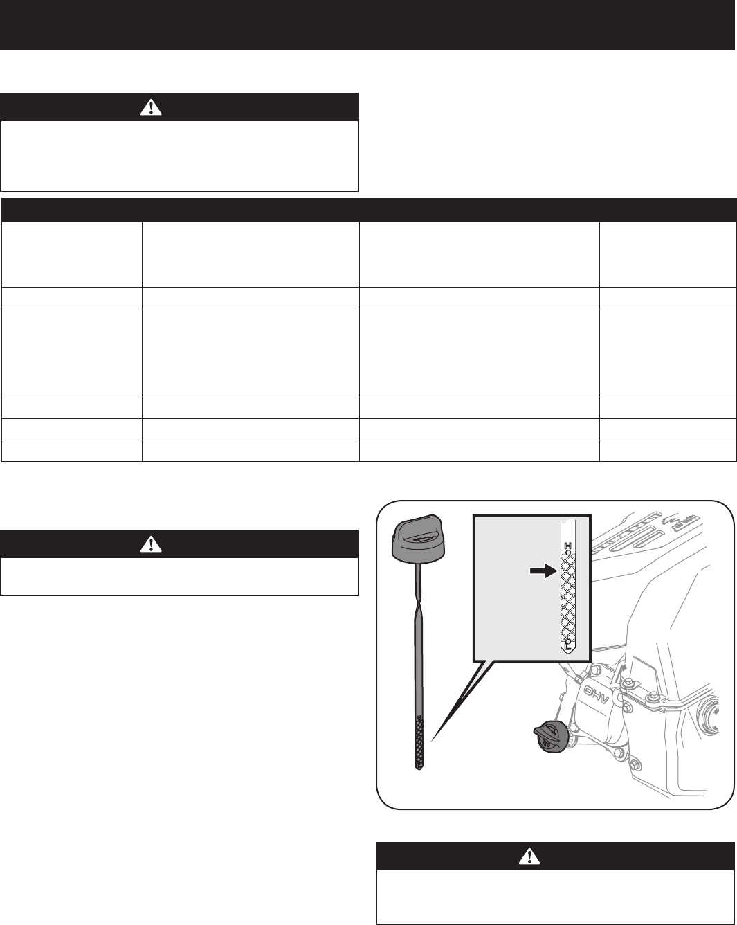 use the proper grade and amount of engine oil, or failure to maintain the equipment according to the instructions contained in the operator’s manual.