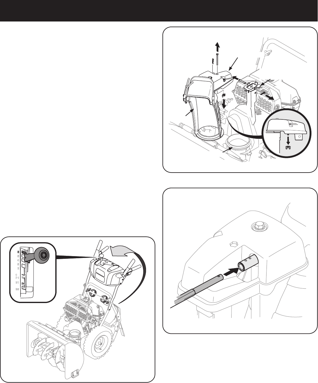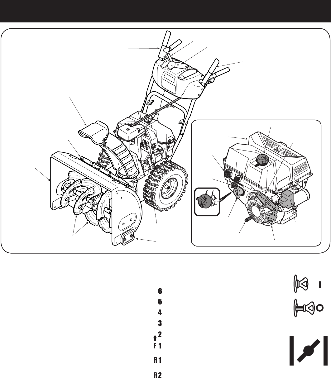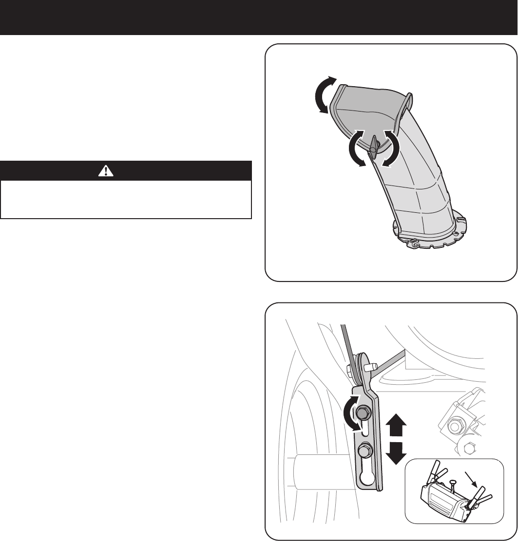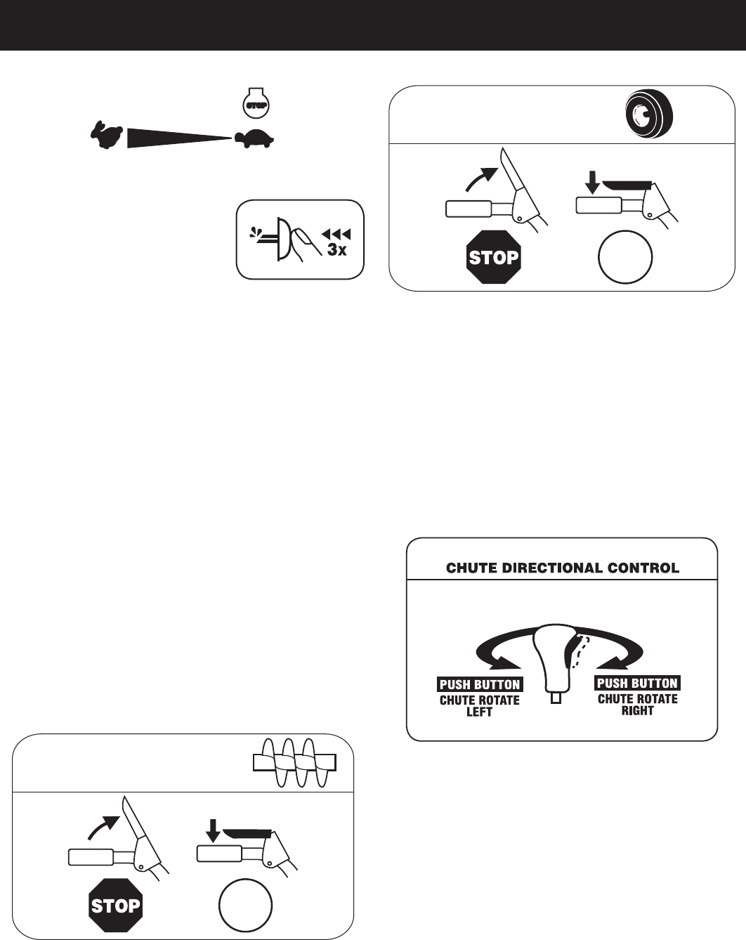 • Thrown objects can cause serious personal injury. Plan your snow-throwing