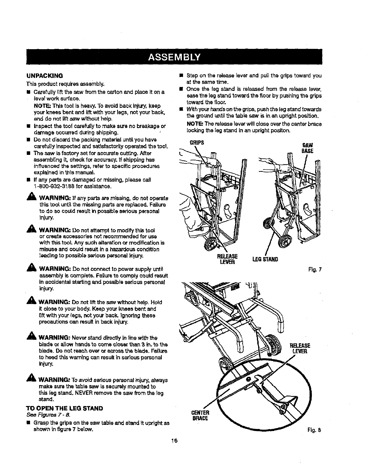 CRAFTSMAN Saw Table Manual L0520316 CRAFTSMAN Saw Table Owner's Manual, CRAFTSMAN Saw Table installation guides