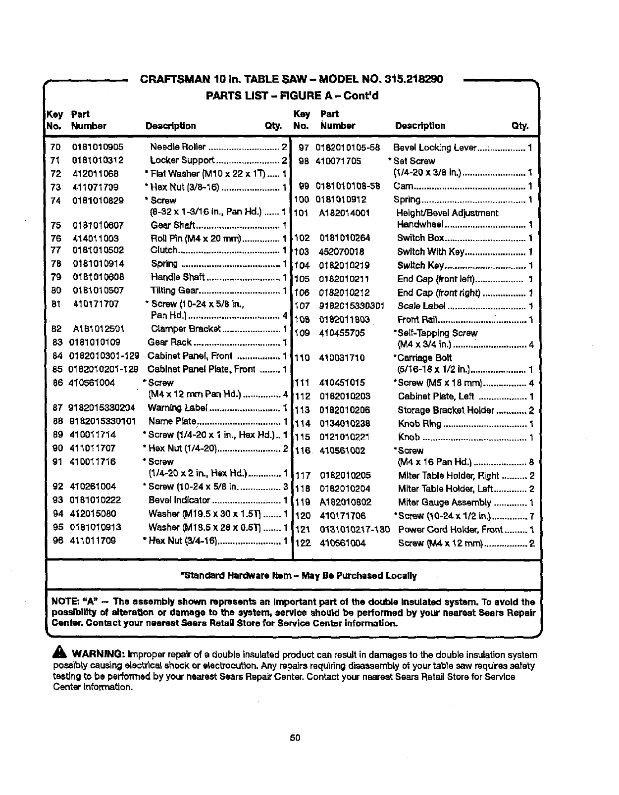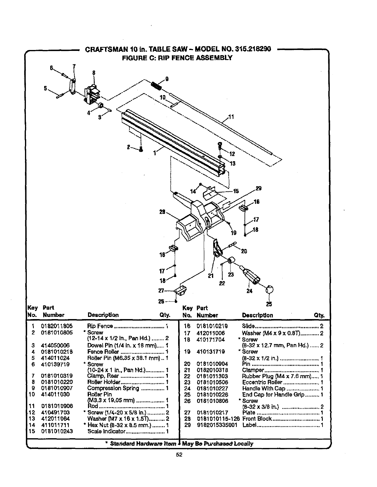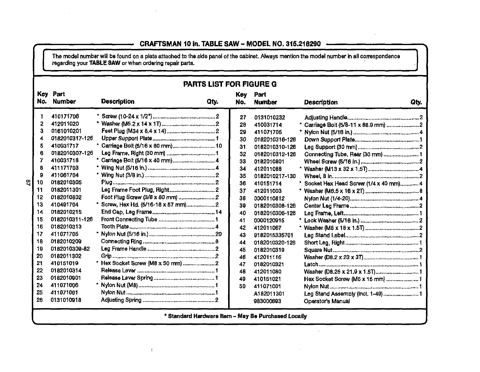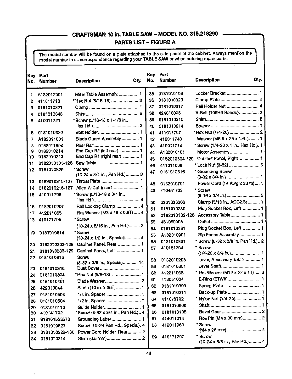 315218290 315218290 CRAFTSMAN 10 TABLE SAW - Manuals and Guides L0520316 View the owners manual for your CRAFTSMAN 10 TABLE SAW #315218290. Home:Tool Parts:Craftsman Parts:Craftsman 10 TABLE SAW Manual