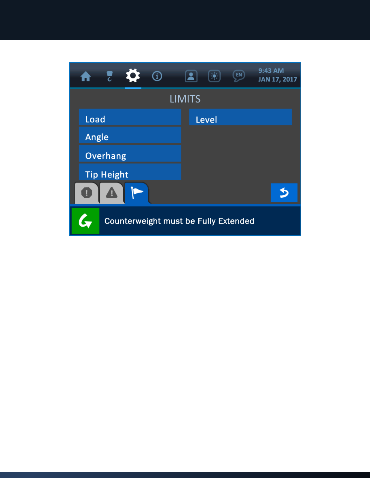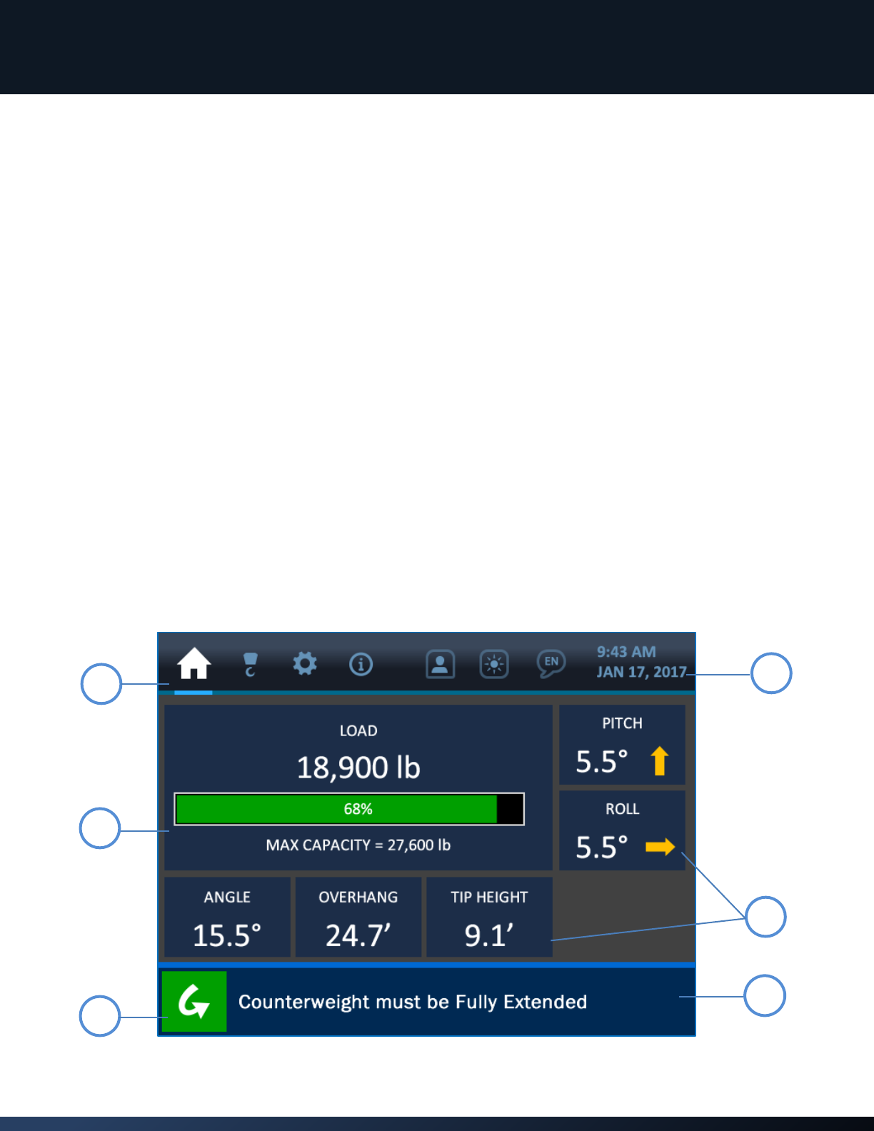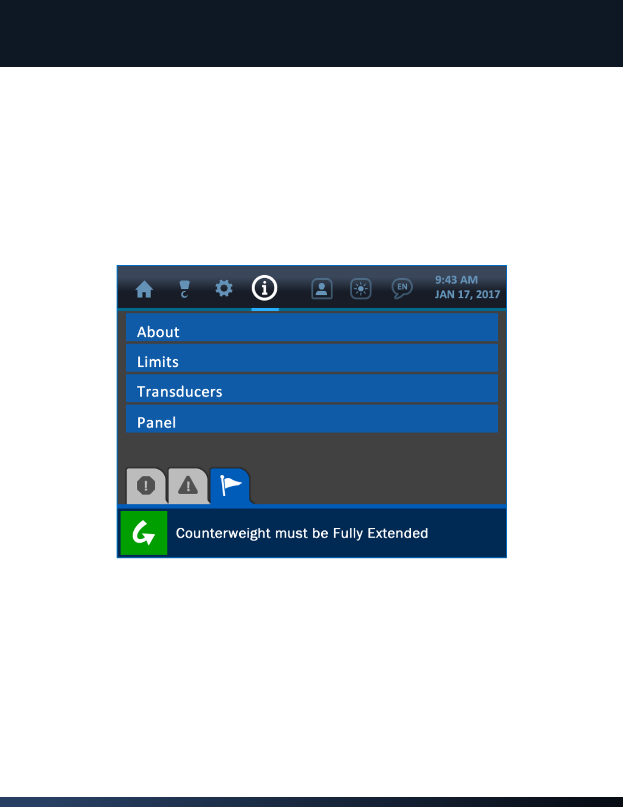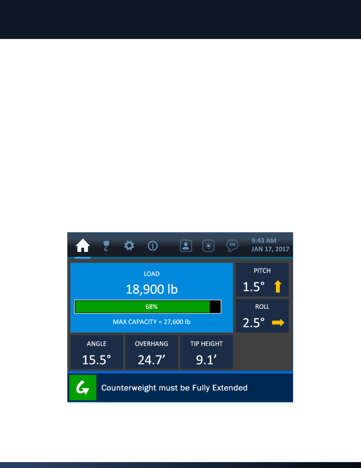 The new Cranesmart Pipelayer LMI 4 System utilizes a large full color touchscreen display panel, which