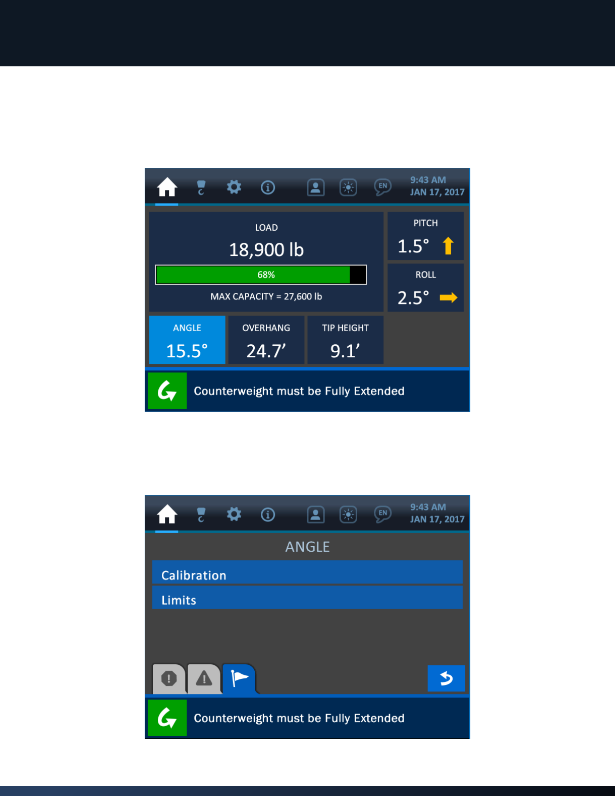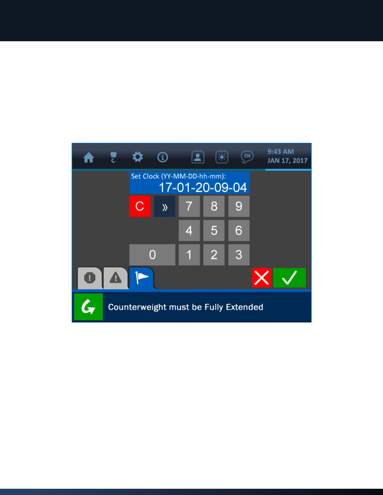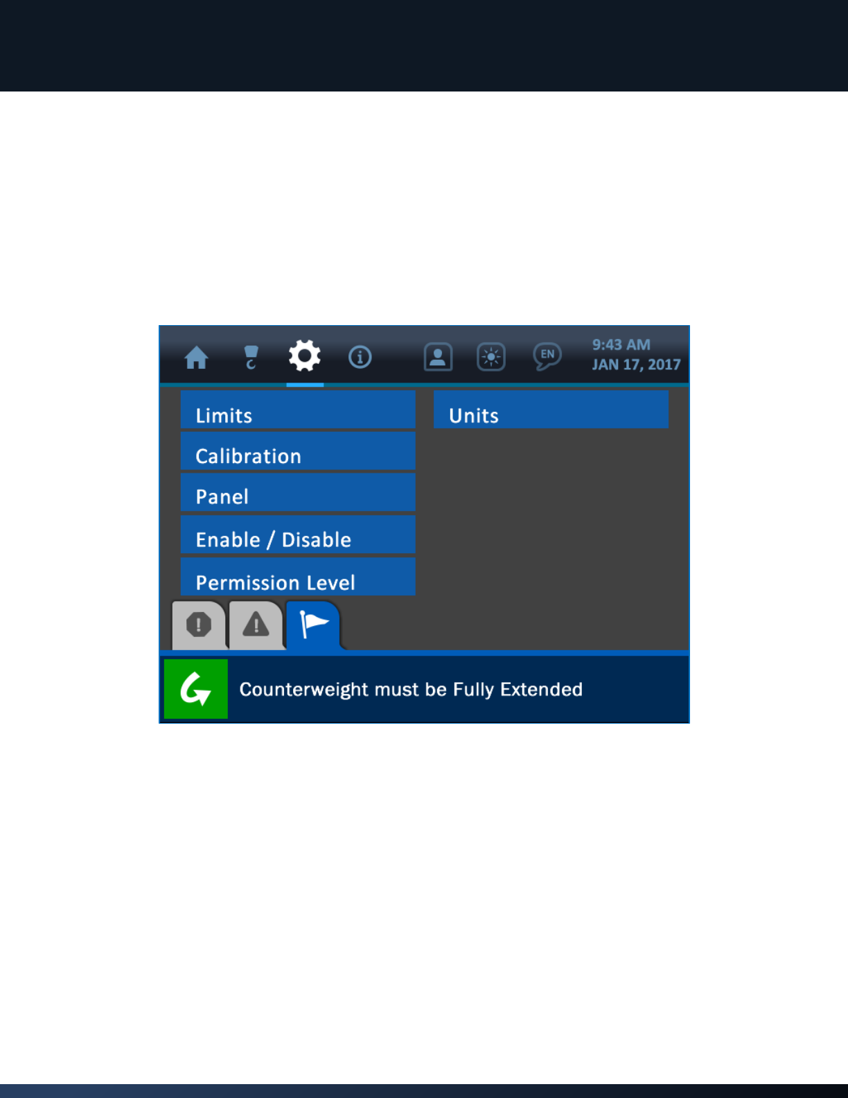 The new Cranesmart Pipelayer LMI 4 System utilizes a large full color touchscreen display panel, which