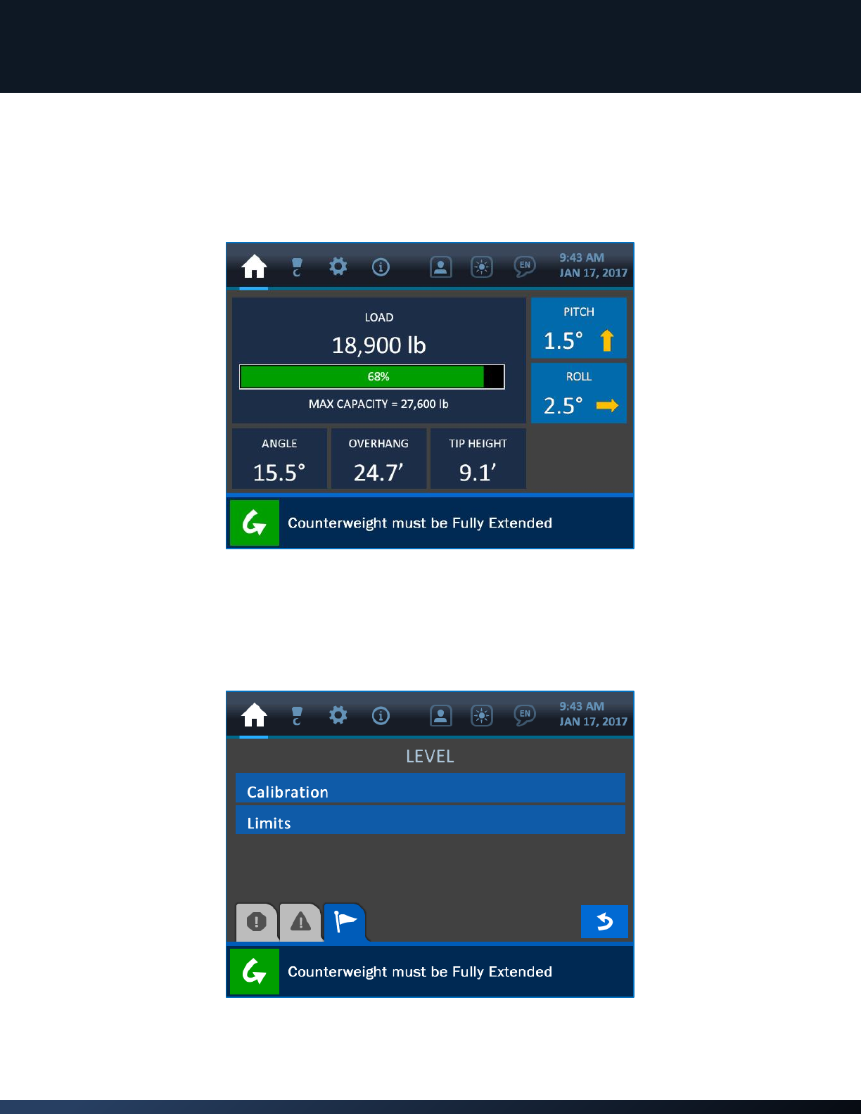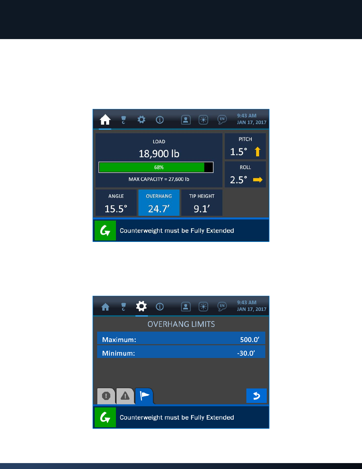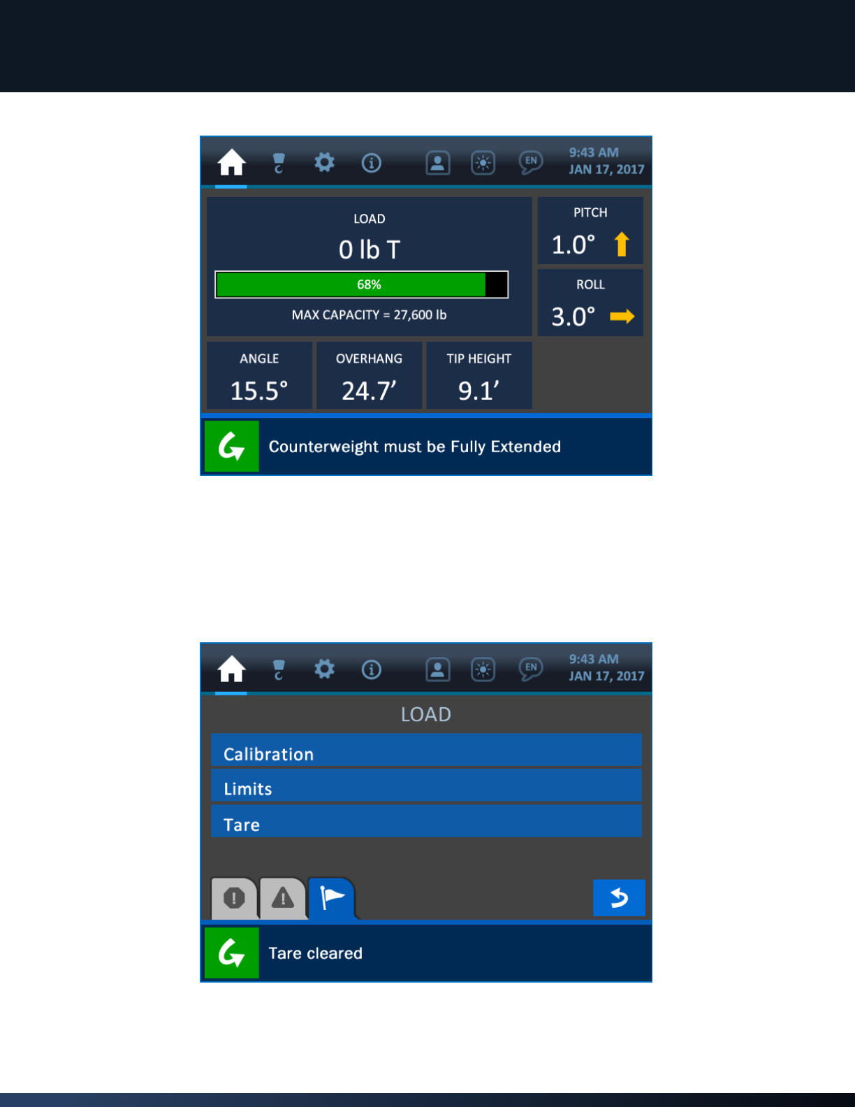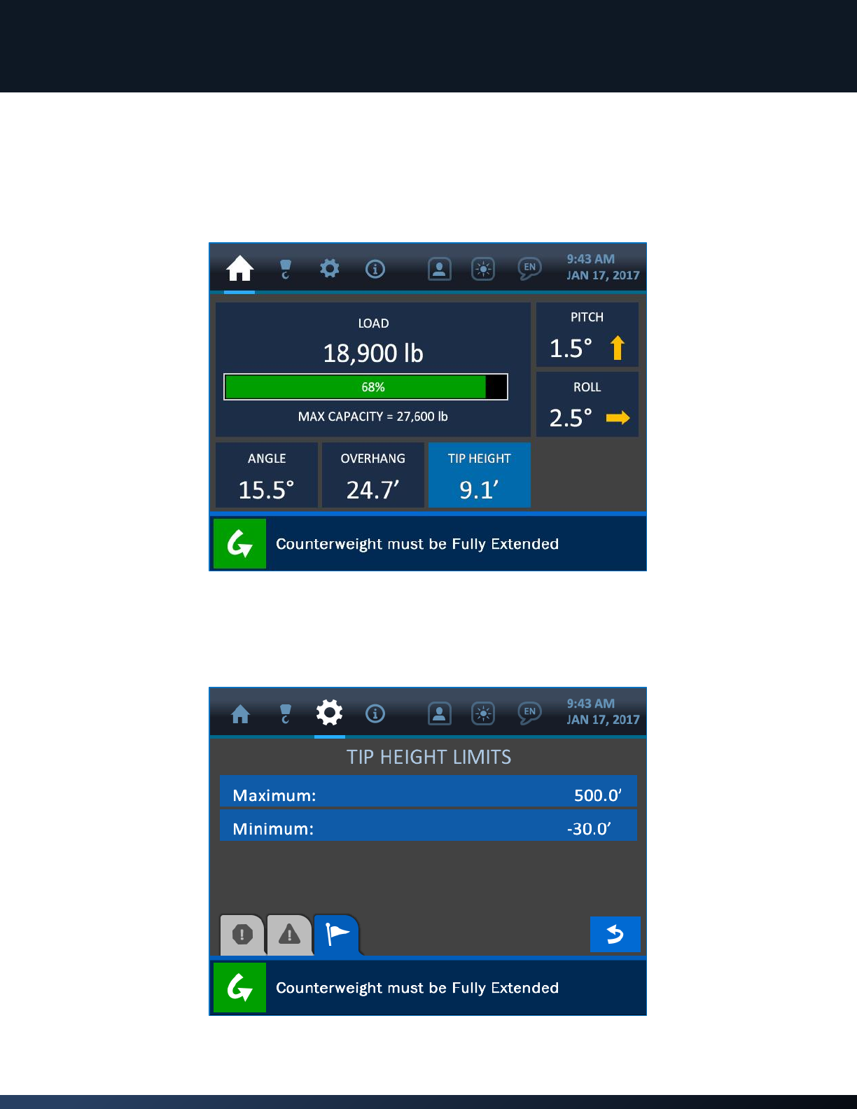 The new Cranesmart Pipelayer LMI 4 System utilizes a large full color touchscreen display panel, which