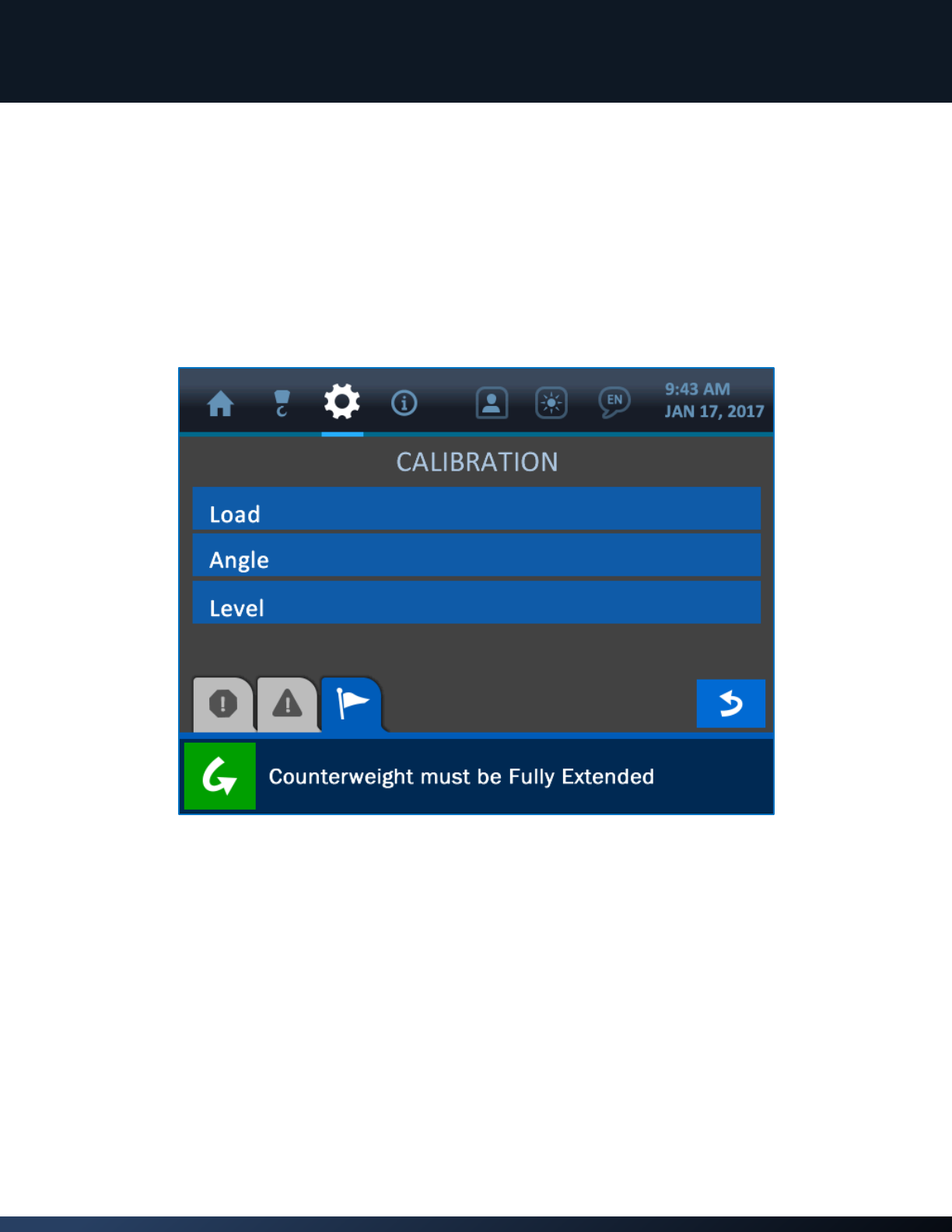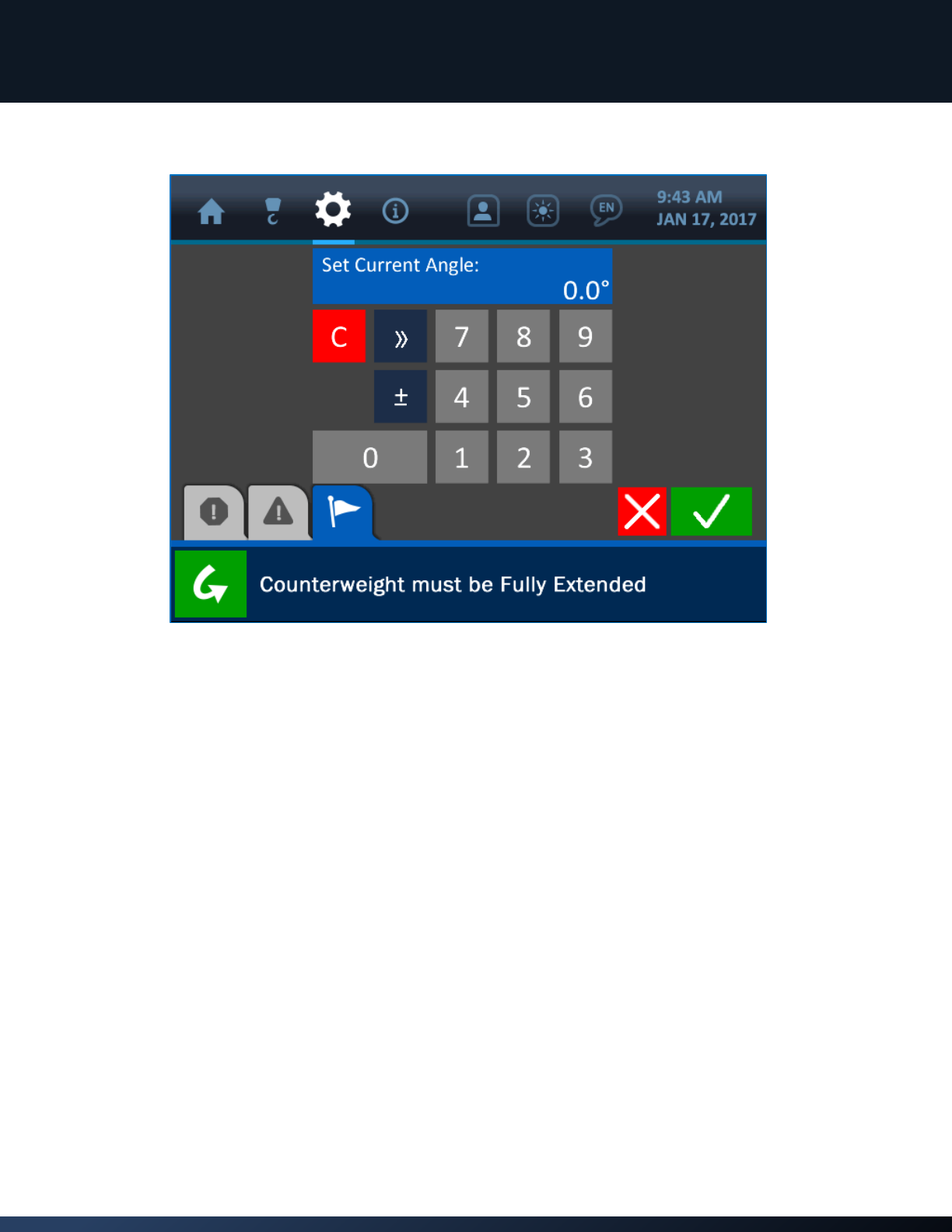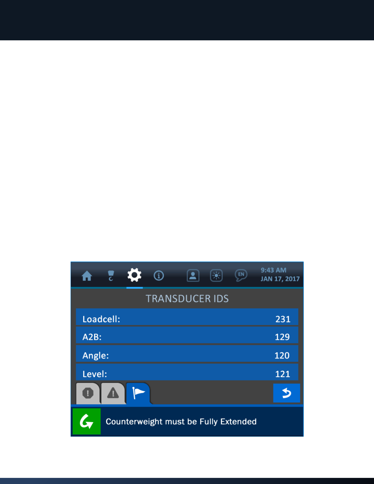 5. Calibrate the boom angle transducer (see section 2.2: Angle Indication on page 16).