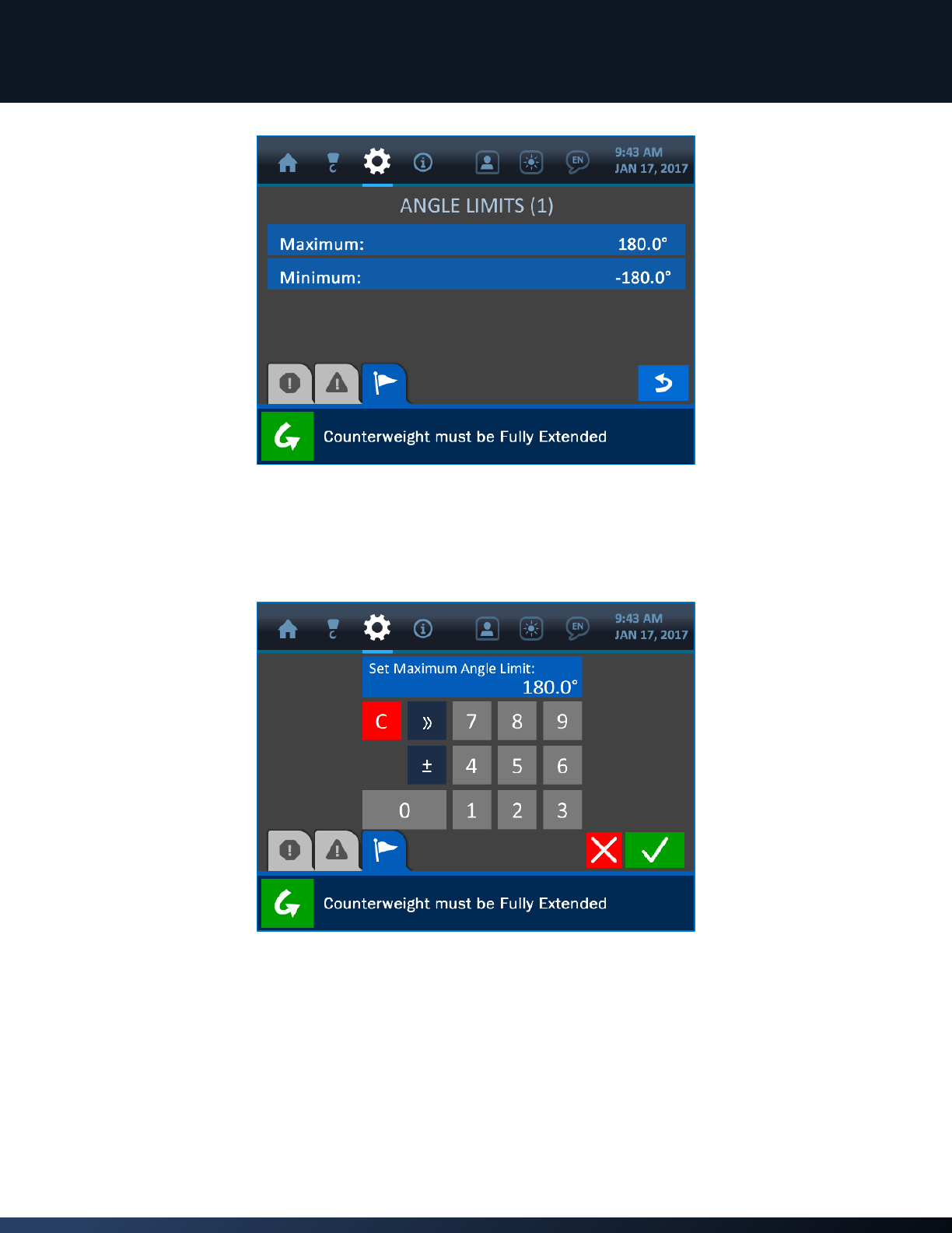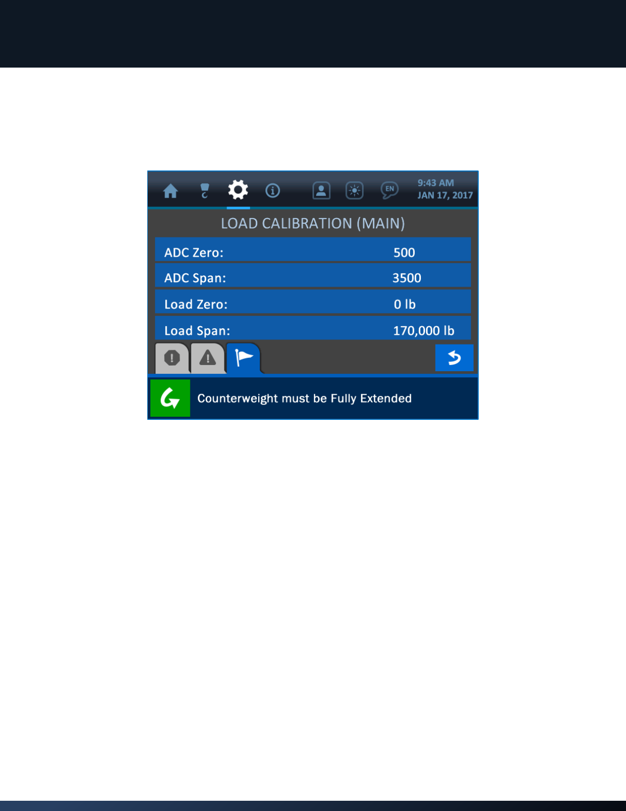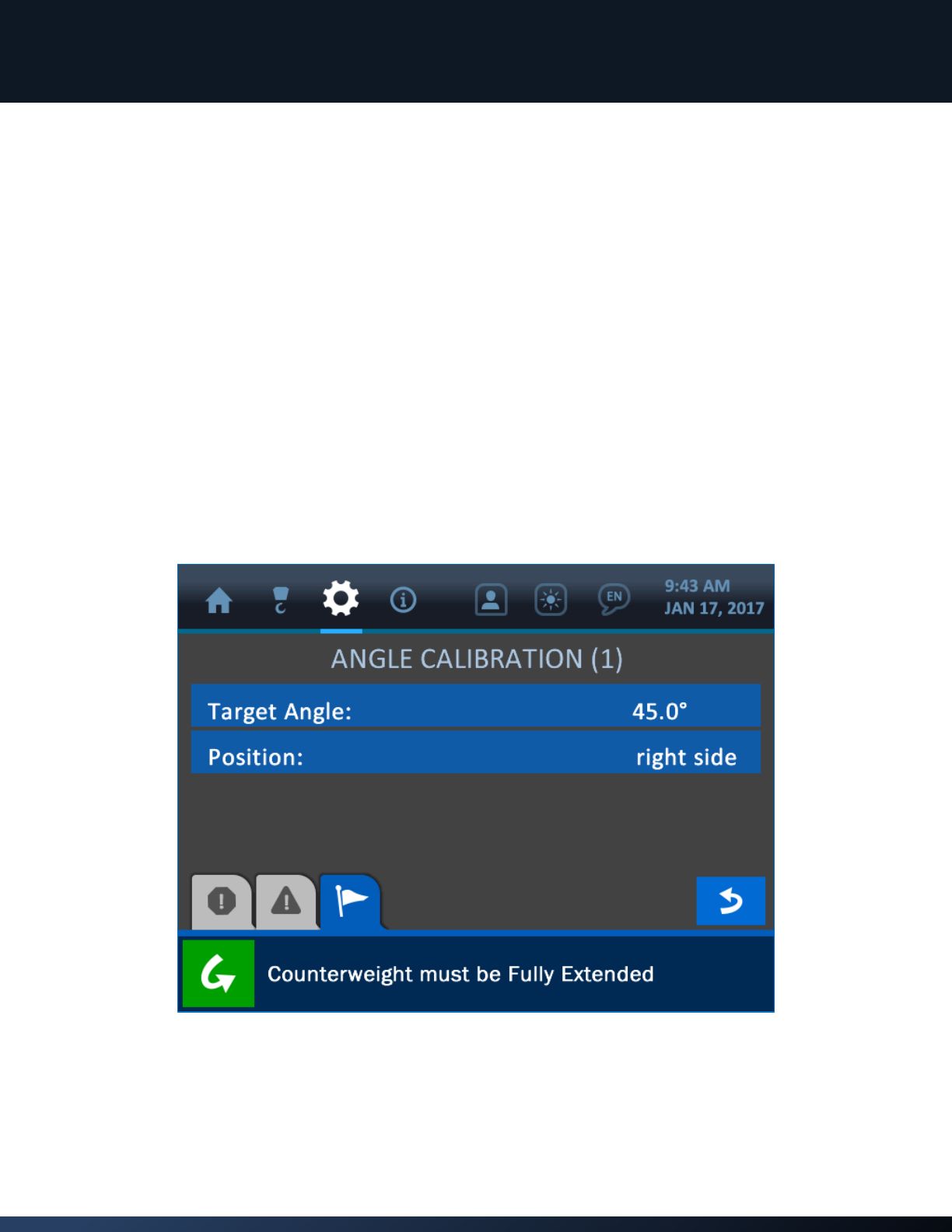 5. Calibrate the boom angle transducer (see section 2.2: Angle Indication on page 16).